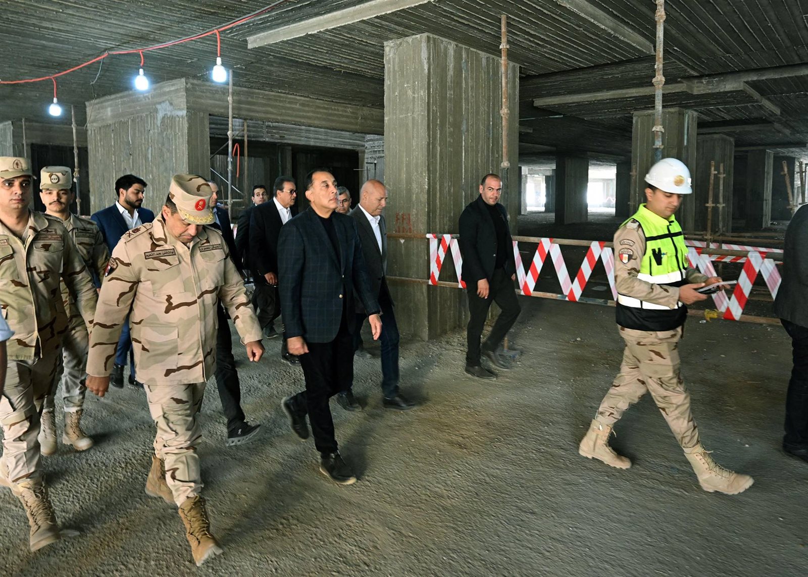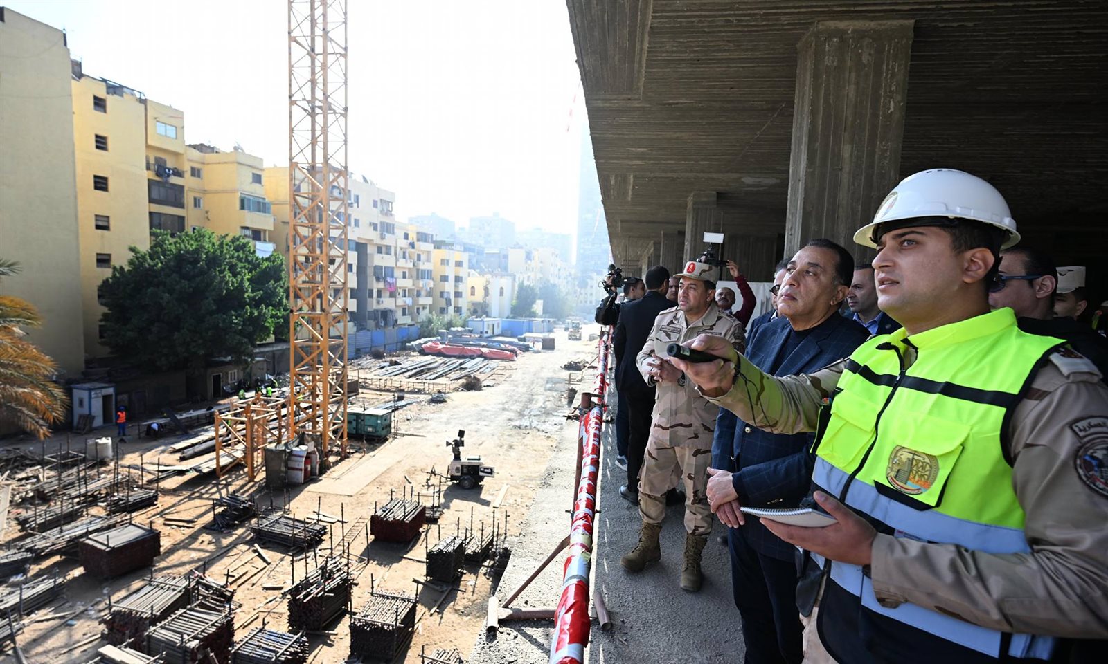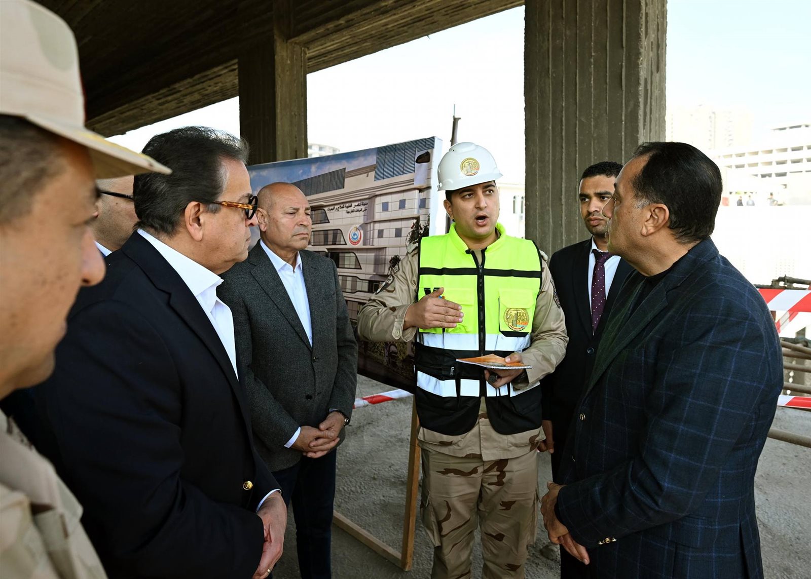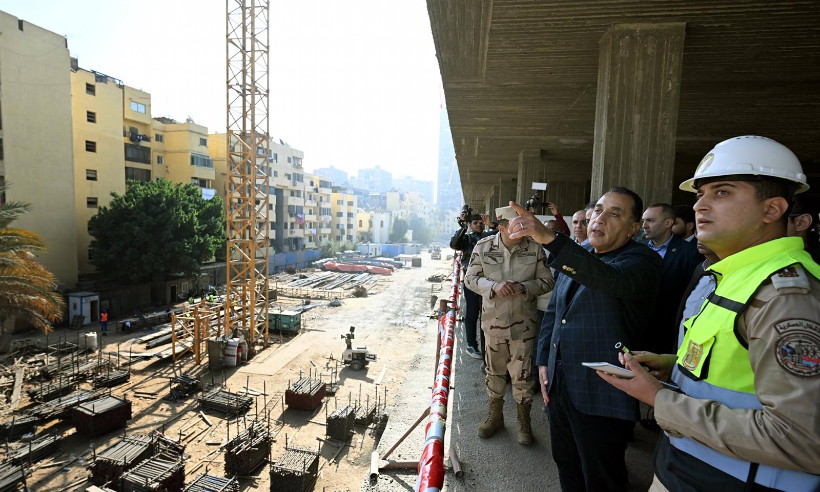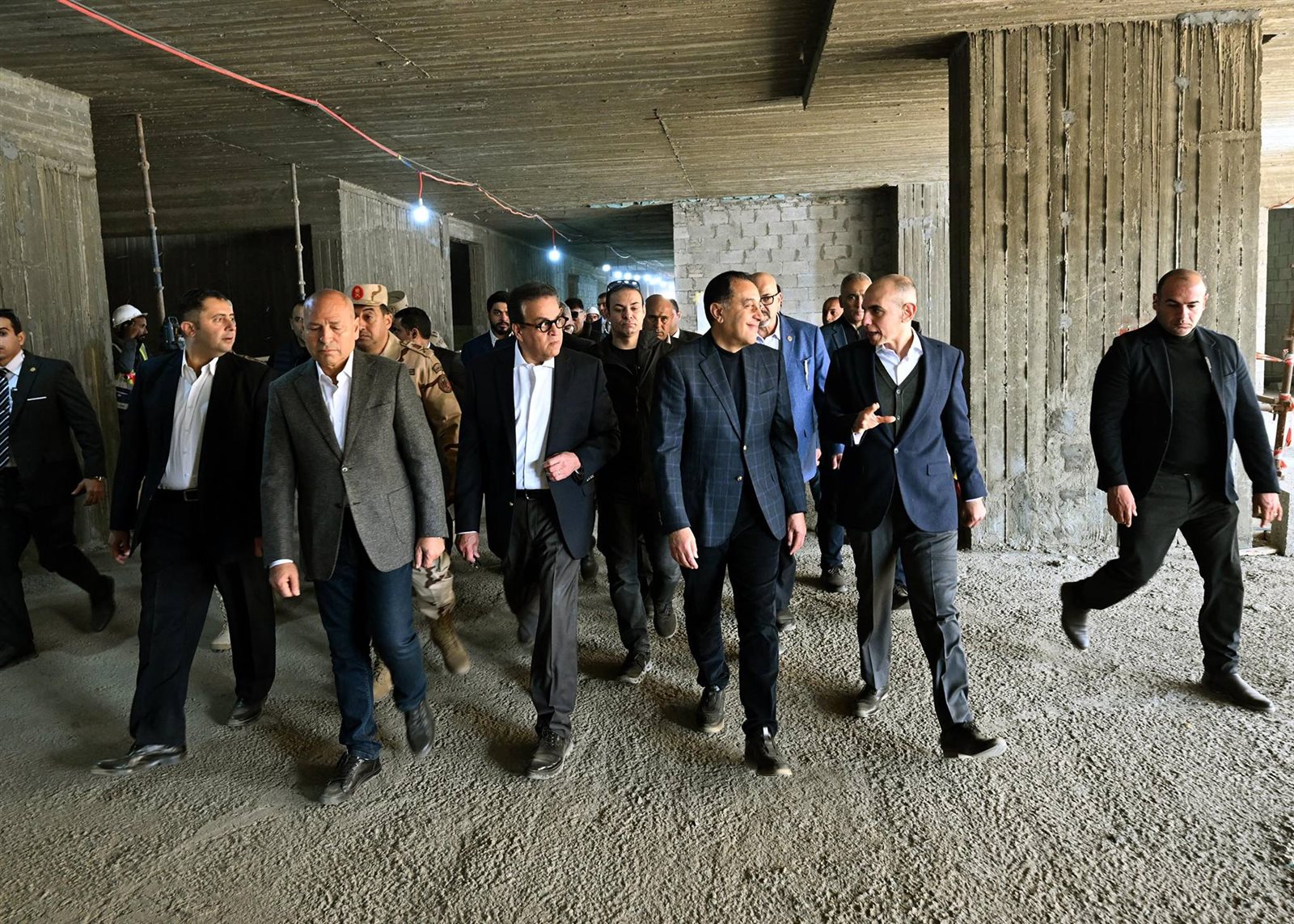 وقال مسئول الهيئة الهندسية لرئيس الوزراء: «فيما يتعلق بالموقف التنفيذي للمشروع فقد تم إحلال وتجديد شبكات البنية التحتية بما تتضمن من (كهرباء – مياه وحريق وري وخزان (3000) م3– صرف صحي ومحطة معالجة (1000) م3 –– تيار خفيف)، كما تم تنسيق الموقع العام بما يشمله من (طرق – أرصفة – بردورات – زراعات)، لافتا إلى أنه يتم تكثيف العمل للانتهاء من المشروع وفق المخطط الزمني لكل مراحله؛ حيث من المقرر الانتهاء من الهيكل الخرساني في 30 يونيو المقبل، كما سيتم الانتهاء من مبنى الجراج متعدد الطوابق في مارس المقبل، والذي يسع لانتظار 640 سيارة».