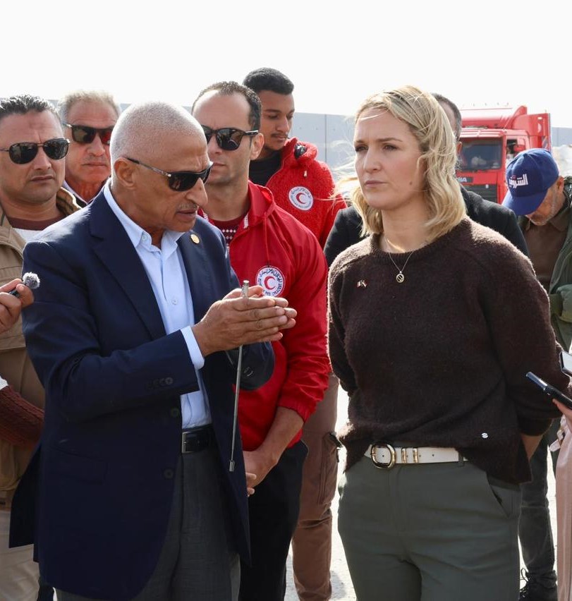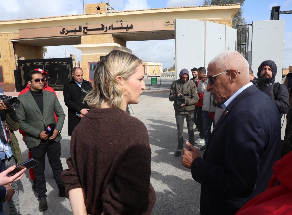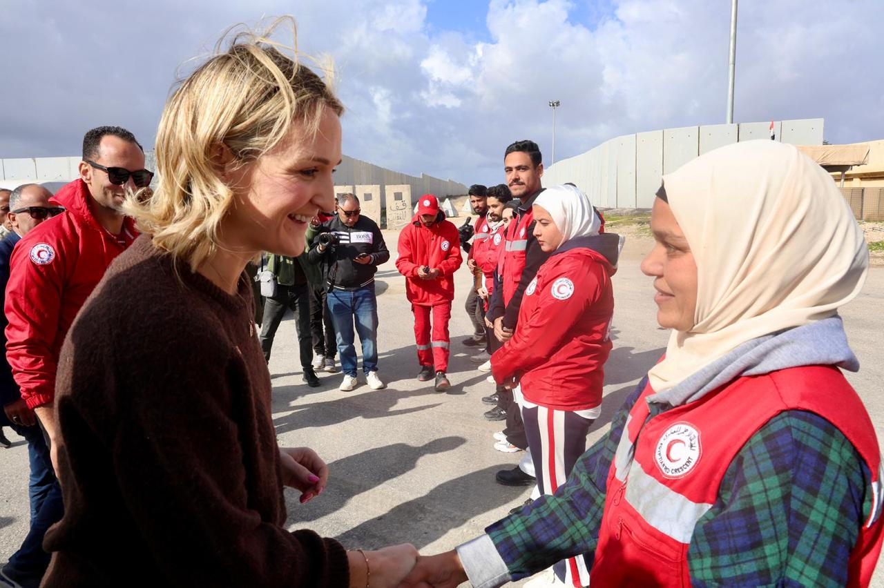 وثمنت الوزيرة - خلال زيارة إلي معبر رفح البري من الجانب المصري - الدور المصري الكبير في احتواء الموقف في قطاع غزة وتهدئة الأوضاع، وجهود مصر في دعم أهالي قطاع غزة، وجهود الهلال الأحمر المصري في إستقبال المساعدات الإنسانية والاغاثية وإدخالها إلي قطاع غزة.