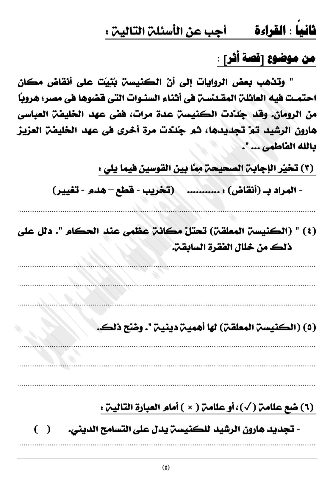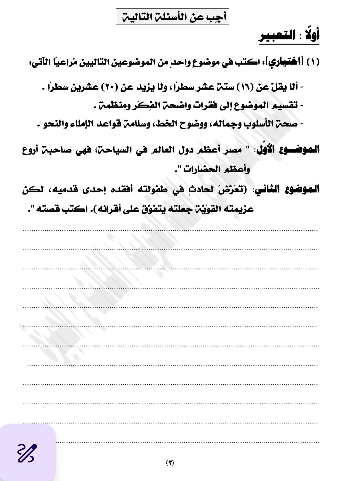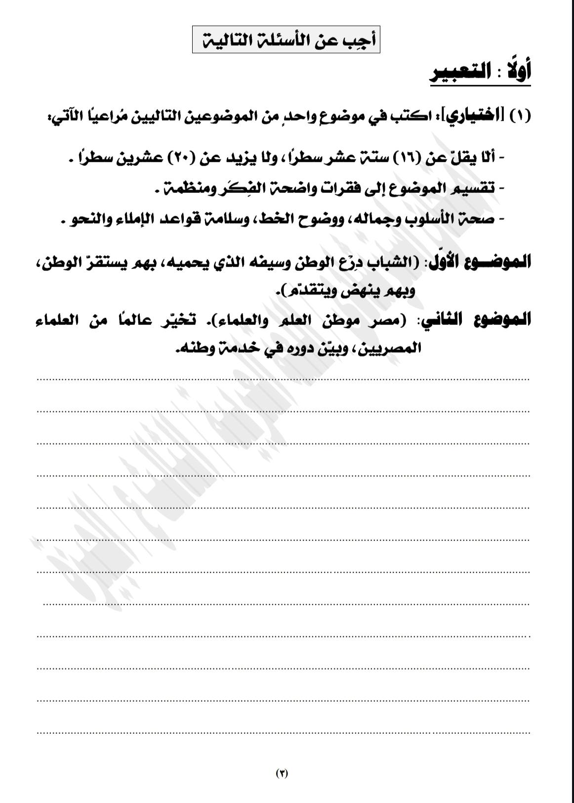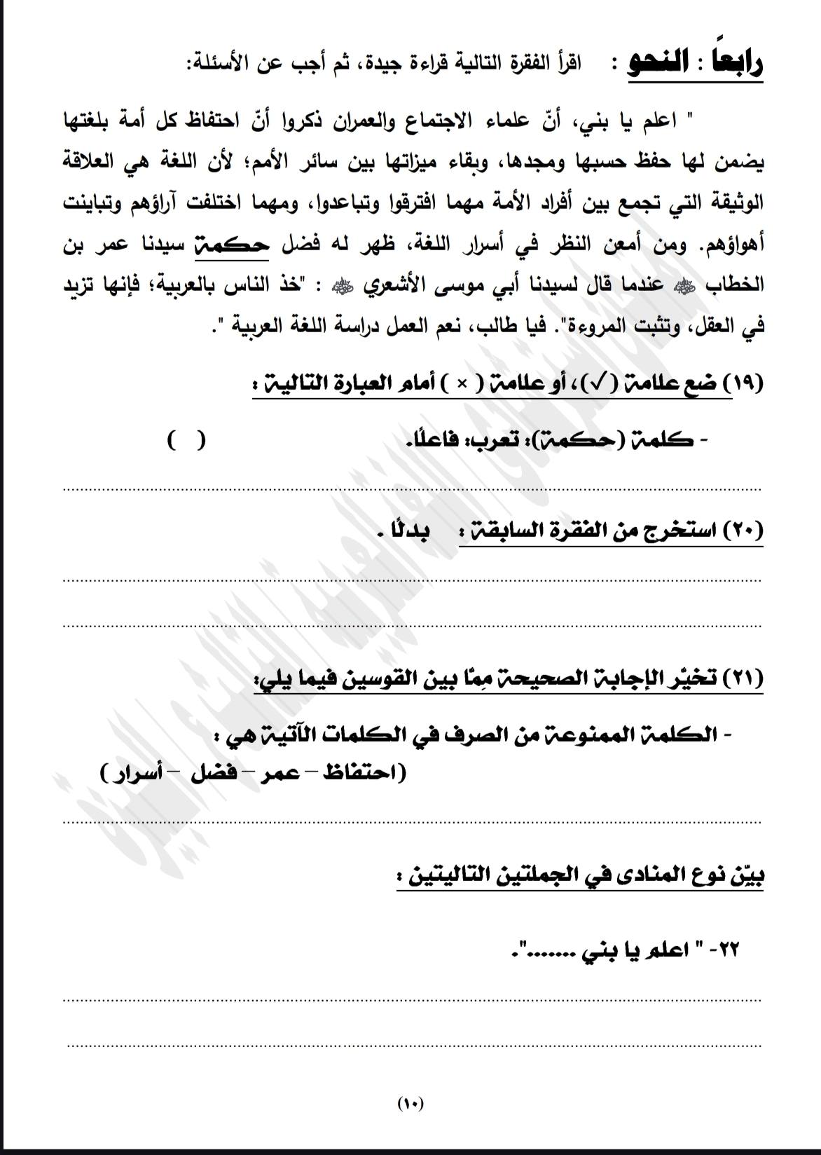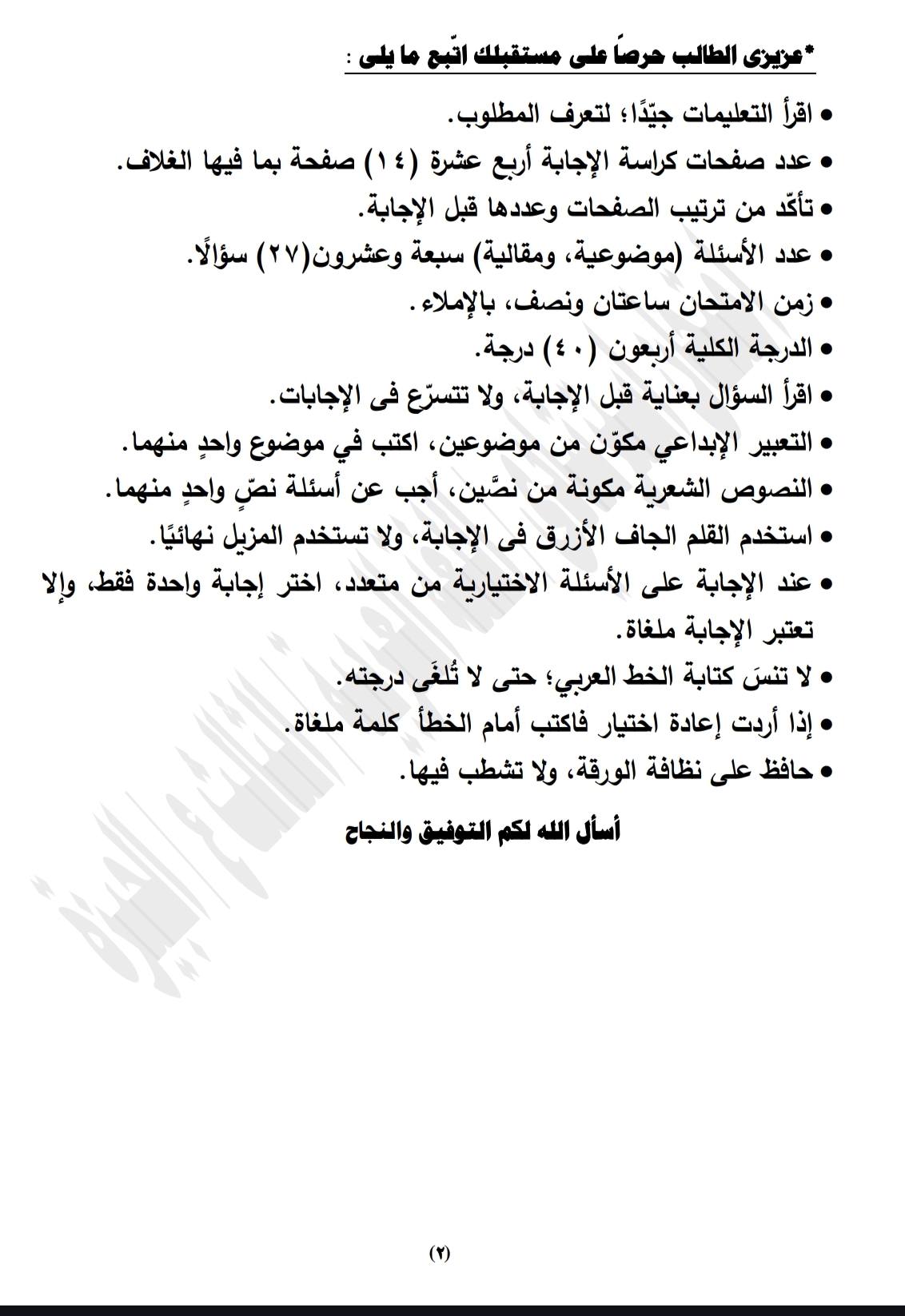وفيما يلي النموذج الاسترشادي لامتحان مادة اللغة العربية للشهادة الإعدادية، الذي يعقد صباح غد السبت: