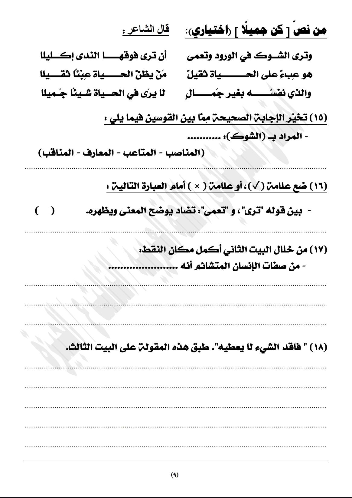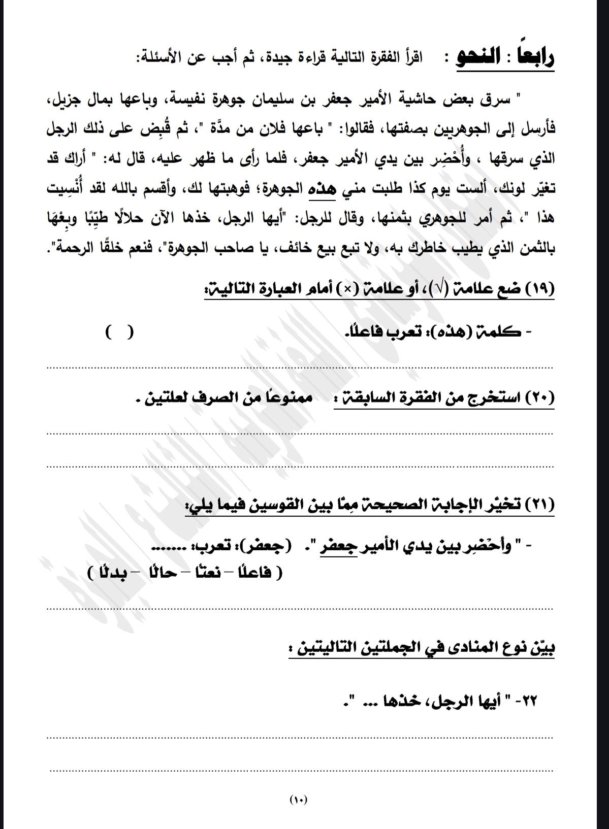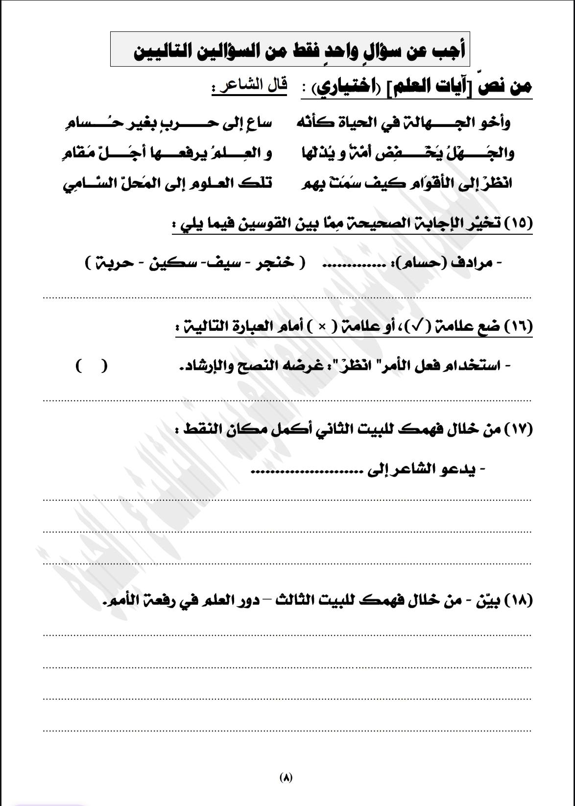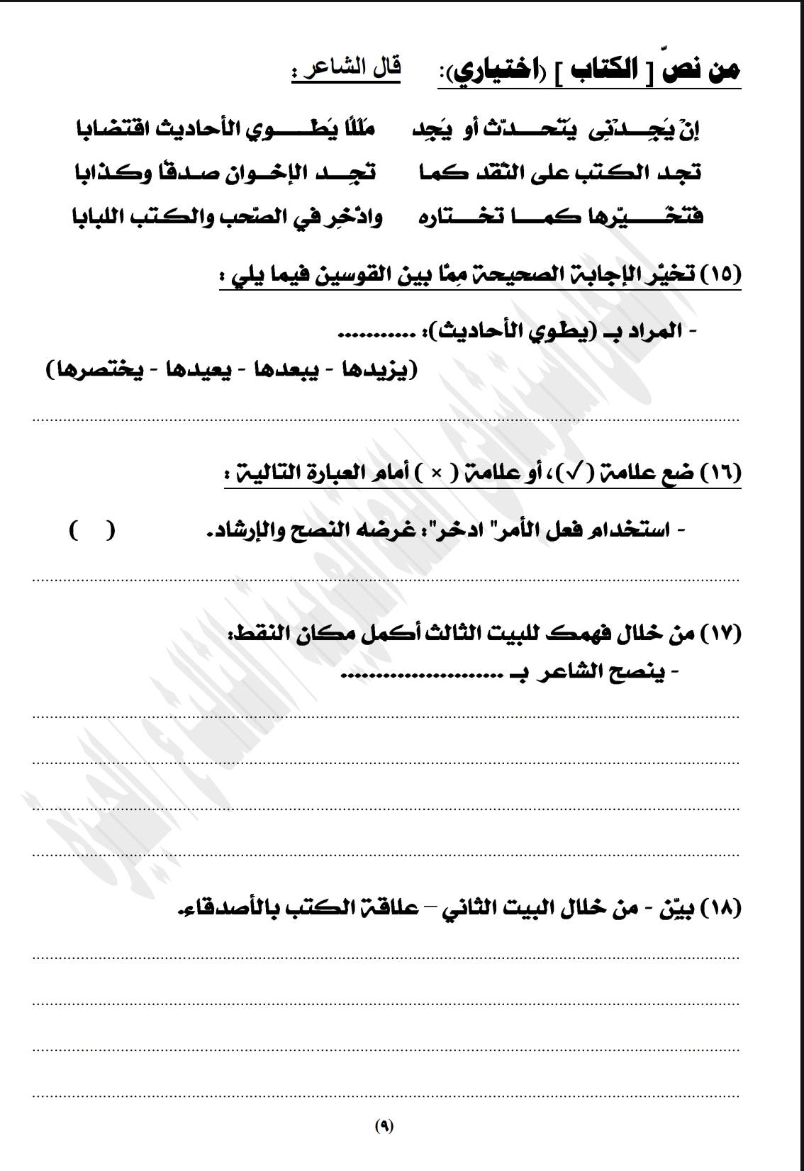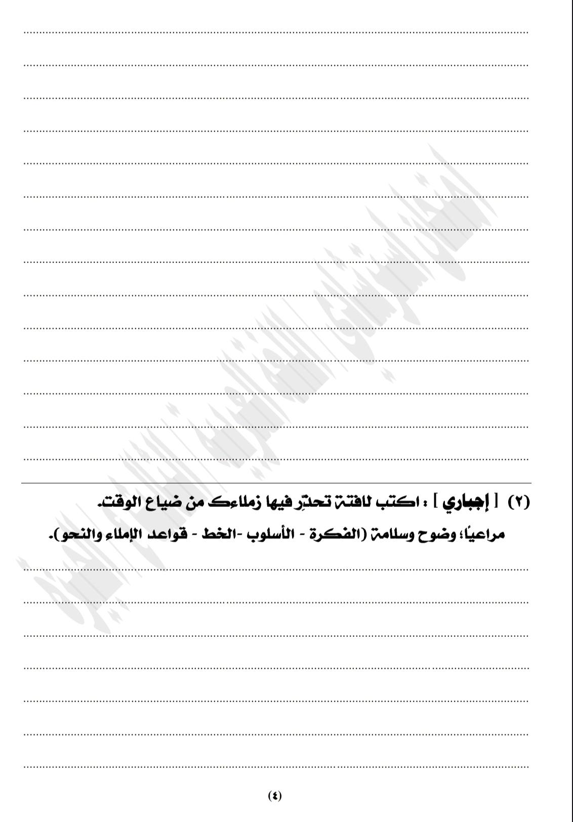 وفيما يلي النموذج الاسترشادي لامتحان مادة اللغة العربية للشهادة الإعدادية، الذي يعقد صباح غد السبت: