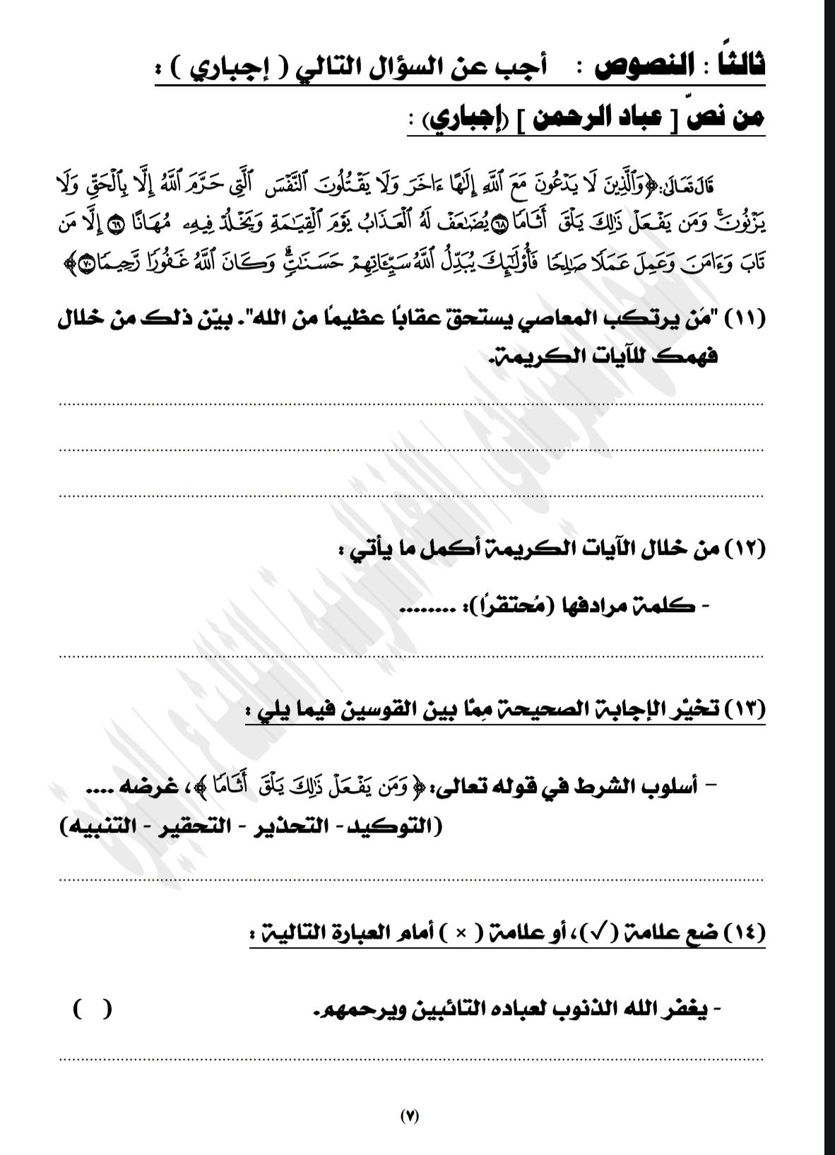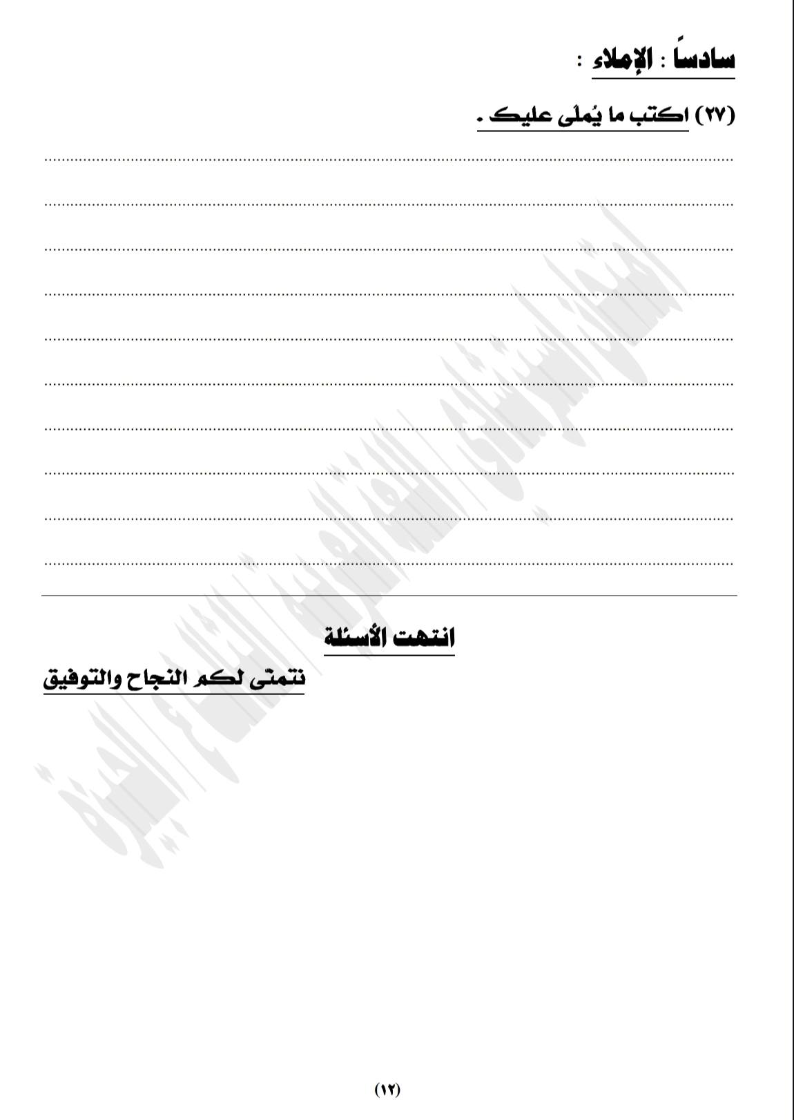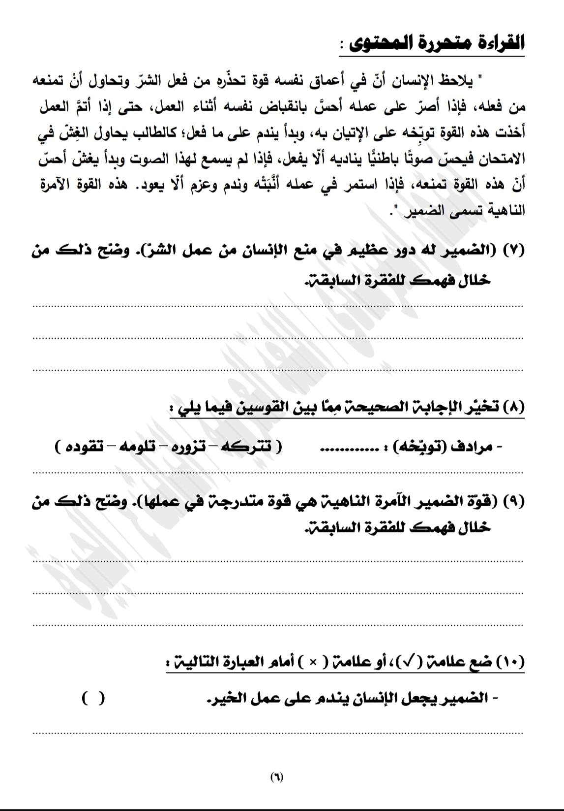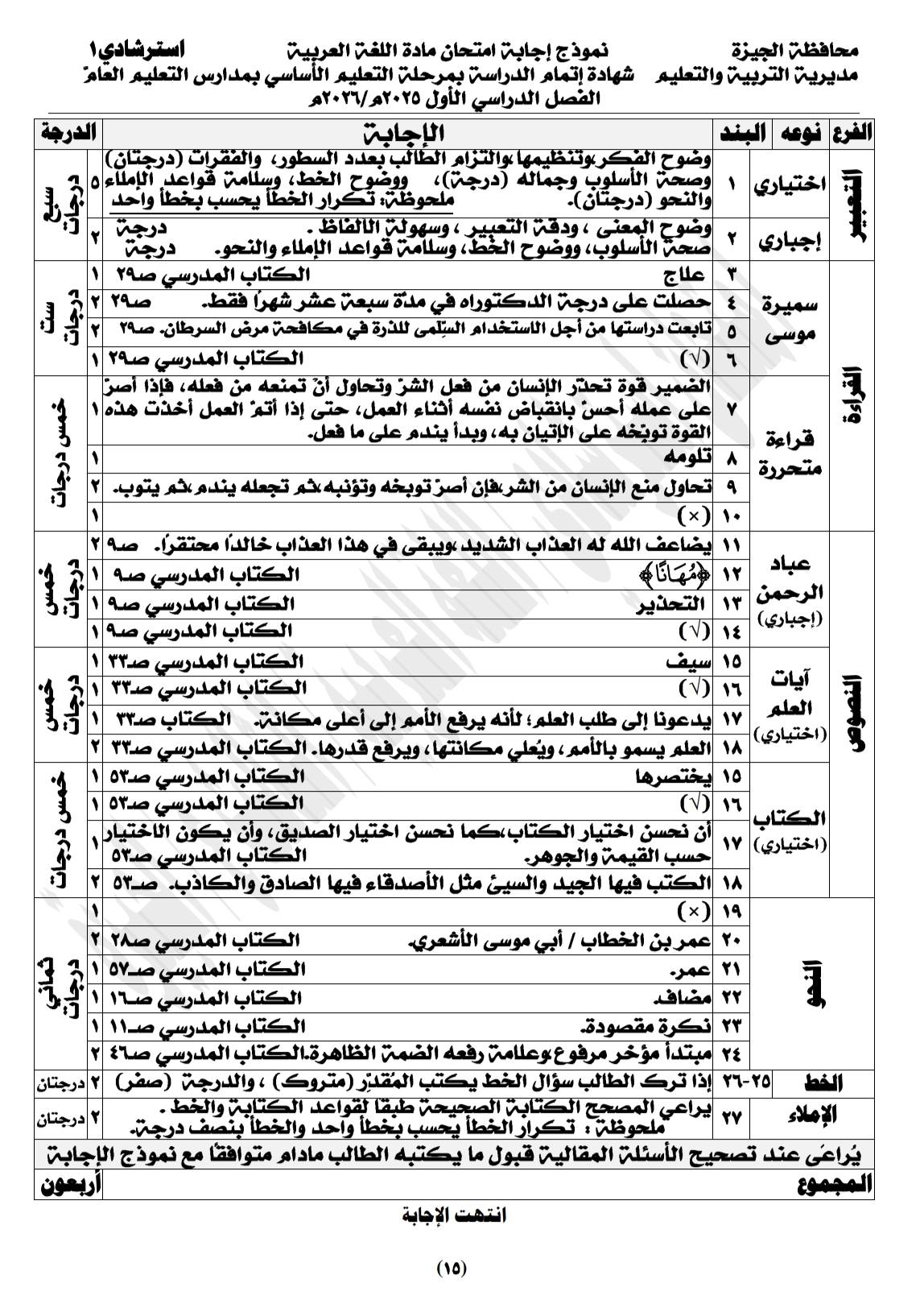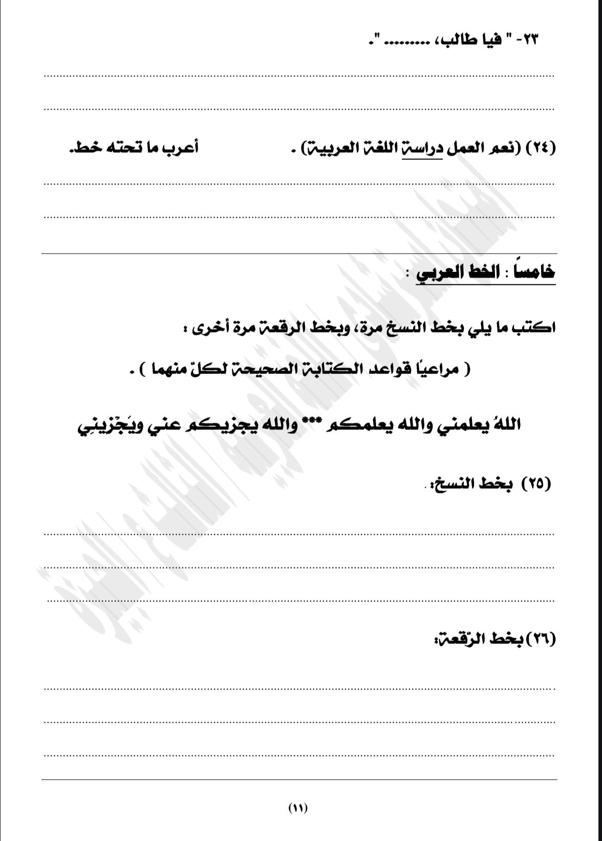 وفيما يلي النموذج الاسترشادي لامتحان مادة اللغة العربية للشهادة الإعدادية، الذي يعقد صباح غد السبت: