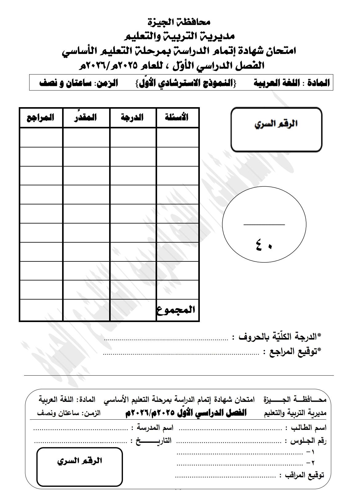 أتاحت مديرية التربية والتعليم بالجيزة نماذج استرشادية لامتحان مادة اللغة العربية لطلاب الشهادة الإعدادية 2026، استعدادًا لانطلاق امتحانات الفصل الدراسي الأول من العام الدراسي 2025/2026؛ حرصًا على مساعدة الطلاب على التعرف على شكل الورقة الامتحانية وطبيعة الأسئلة المتوقعة.