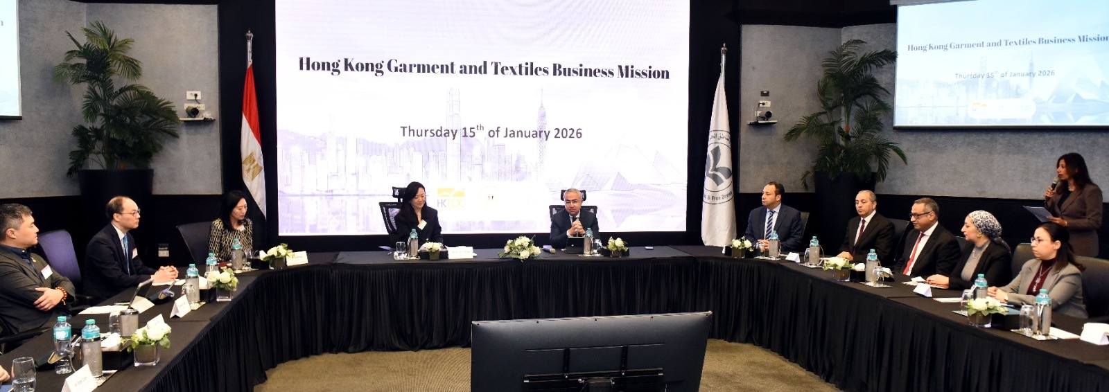 جاء ذلك خلال المائدة المستديرة التي عقدها المهندس محمد الجوسقي، الرئيس التنفيذي للهيئة العامة للاستثمار والمناطق الحرة، مع وفد رفيع المستوى من الشركات العاملة في مجال الملابس الجاهزة والمنسوجات من هونج كونج.