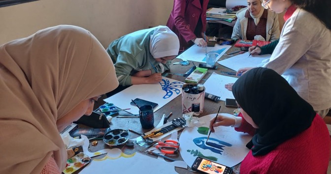 وضمن نشاط مرسم الطفل، أقيمت ورشة تصميم لوحات فنية مستوحاة من عناصر الفن الشعبي باستخدام الألوان الخشبية، تحت إشراف الفنانات نيرة جلال، هبة فضل، ولميس سعيد.