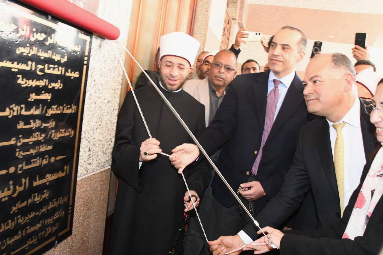 افتتح الدكتور أسامة الأزهري، وزير الأوقاف، المسجد الرئيسي بقرية أم صابر، التابعة لمركز بدر، بمحافظة البحيرة، يرافقه المستشار محمود فوزي، وزير شئون المجالس النيابية، والدكتورة جاكلين عازر، محافظ البحيرة.