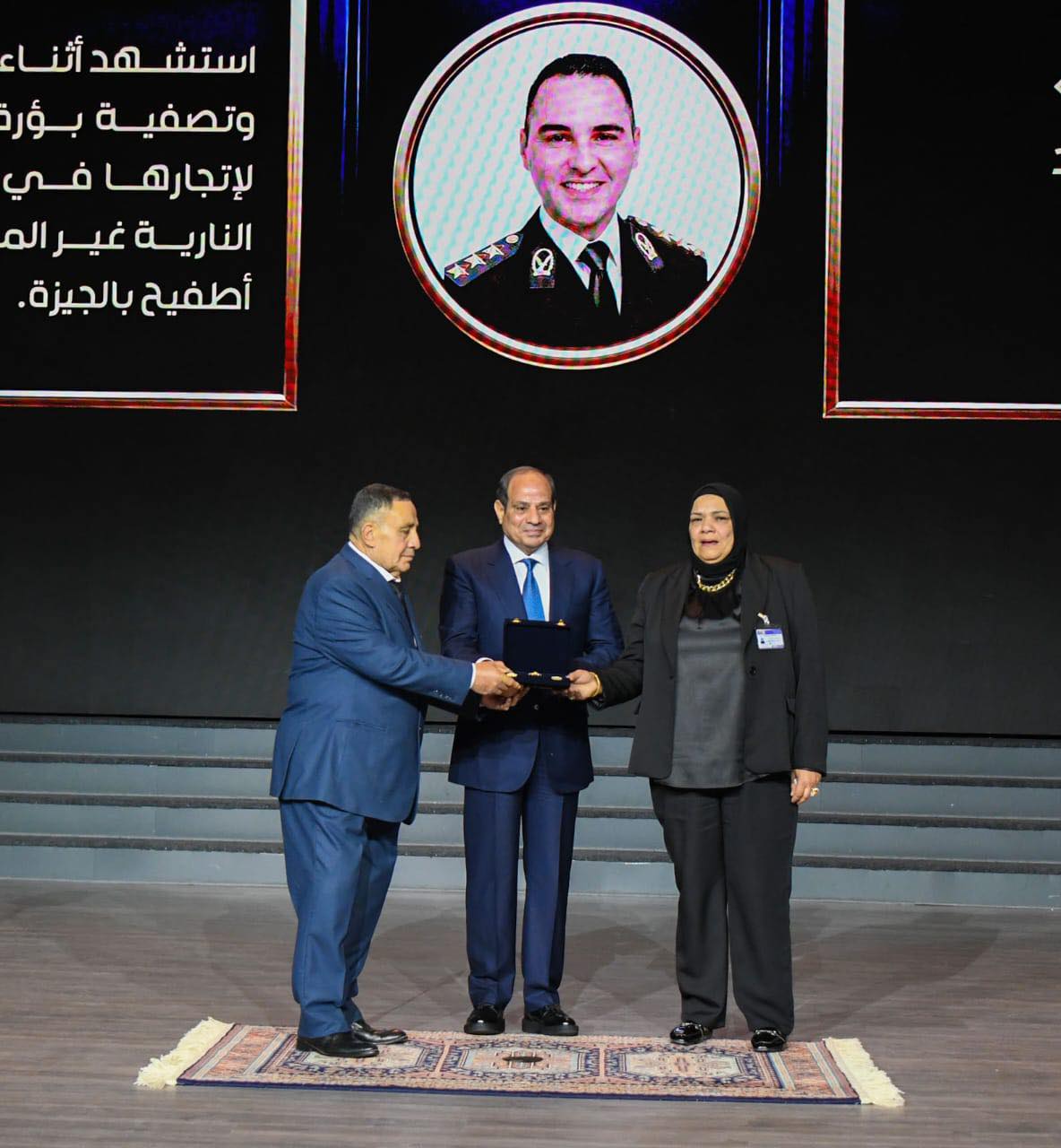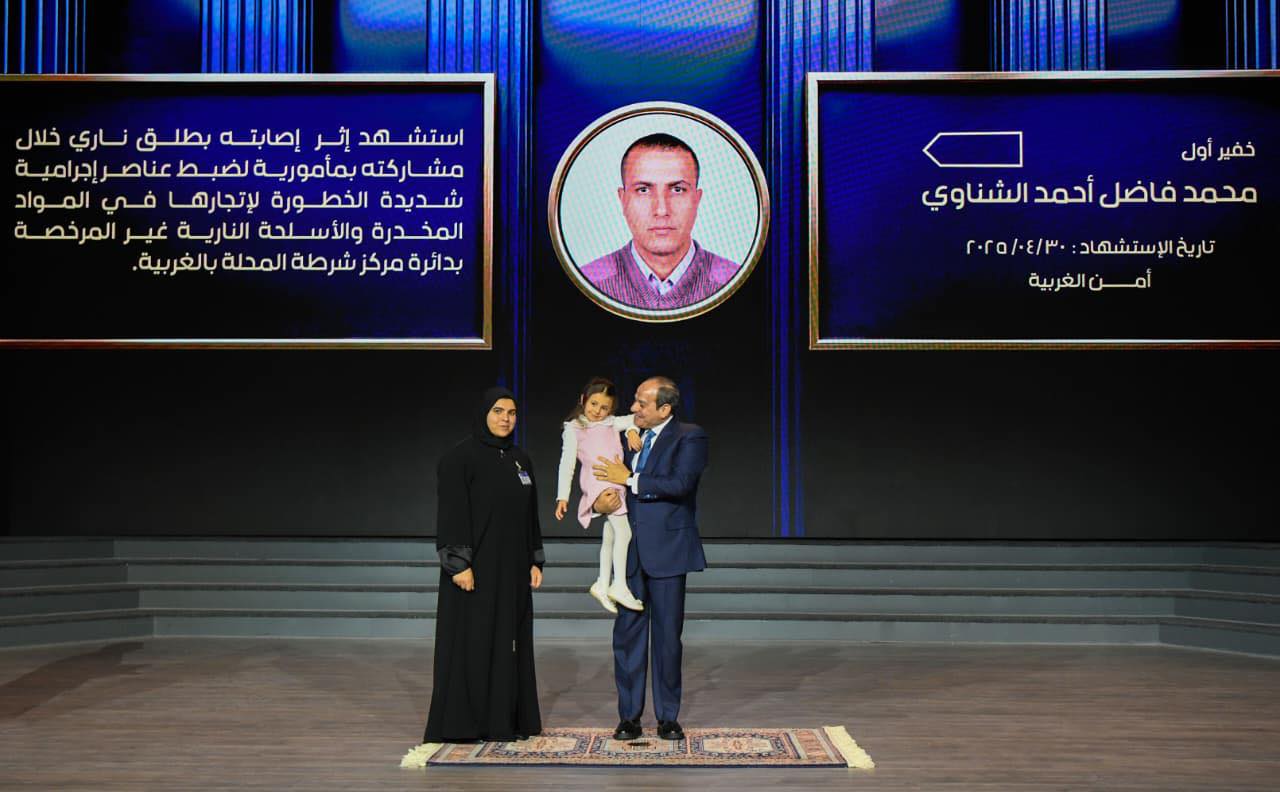 (والحقيقة هنا؛ ونحن أمام أسر الشهداء والمصابين، ففي كل لقاء، نشير إلى أن التضحيات لا تنتهي، وكلما التقينا بأسر الشهداء، فإننا نجدد العهد بامتناننا لهم، وأوكد أن مؤسسات الدولة ملتزمة بدعمهم. وهنا، فلابد من وجود أنشطة مختلفة للقاء أسر الشهداء والمصابين على مدار العام، بحيث يكون هناك برامج مخصصة لهم في أكاديمية الشرطة والأكاديمية العسكرية، وأوجه كل التحية والتقدير والاحترام والاعتزاز لمن ضحوا بأرواحهم… وإننا لن نتحدث عن الإجراءات التي تم اتخاذها مع أسر الشهداء، ولكن أشير إلى أنه منذ حوالي ثماني إلى تسع سنوات تم إنشاء صندوق للشهداء والمصابين، يشمل شهداء ومصابي كل الحروب، بما في ذلك شهداء ومصابي حرب 1948، و1956 و1967، وحرب الاستنزاف، وكذلك المدنيين المشاركين في بناء حائط الصواريخ، وكذا حرب أكتوبر عام 1973، وحتى الحروب التالية في مواجهة الإرهاب، من أبناء الجيش والشرطة والقضاء ووزارة الخارجية وغيرها من أجهزة الدولة الأخرى. وأشير أيضاً إلى المبادرة التي تم إعدادها لأبناء أسر الشهداء من خلال الصندوق بالتنسيق مع البنك المركزي وشركة التأمين الأهلية، لصرف مبلغ لأبناء الشهداء والمصابين عند بلوغهم سن 21 عاما، وذلك وفقا للبيانات المتاحة لدينا..
