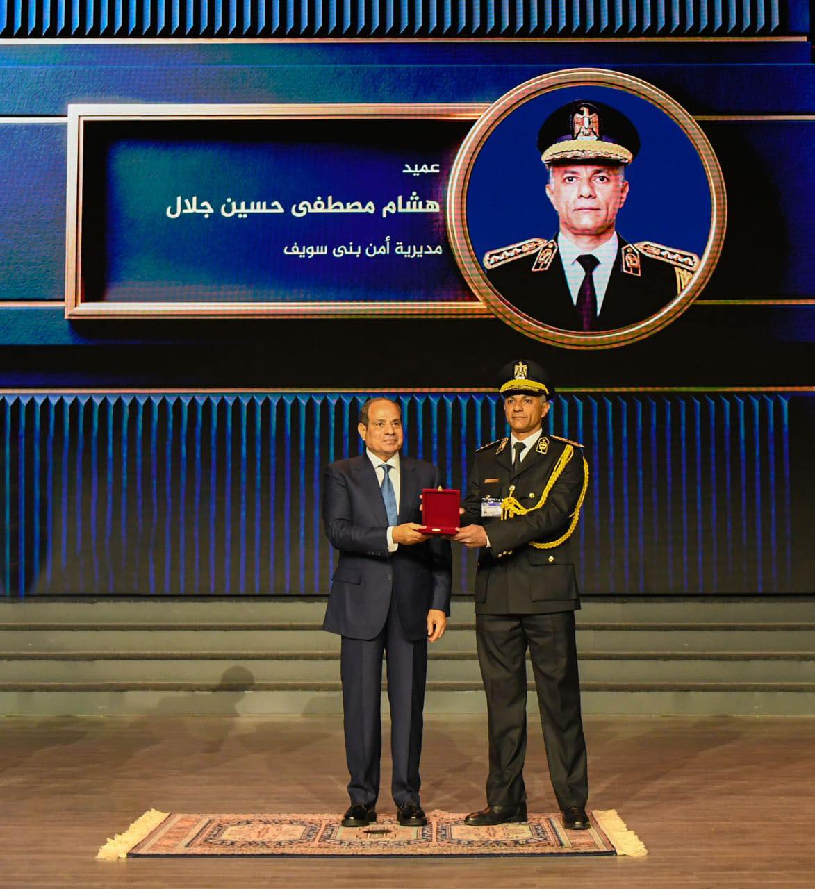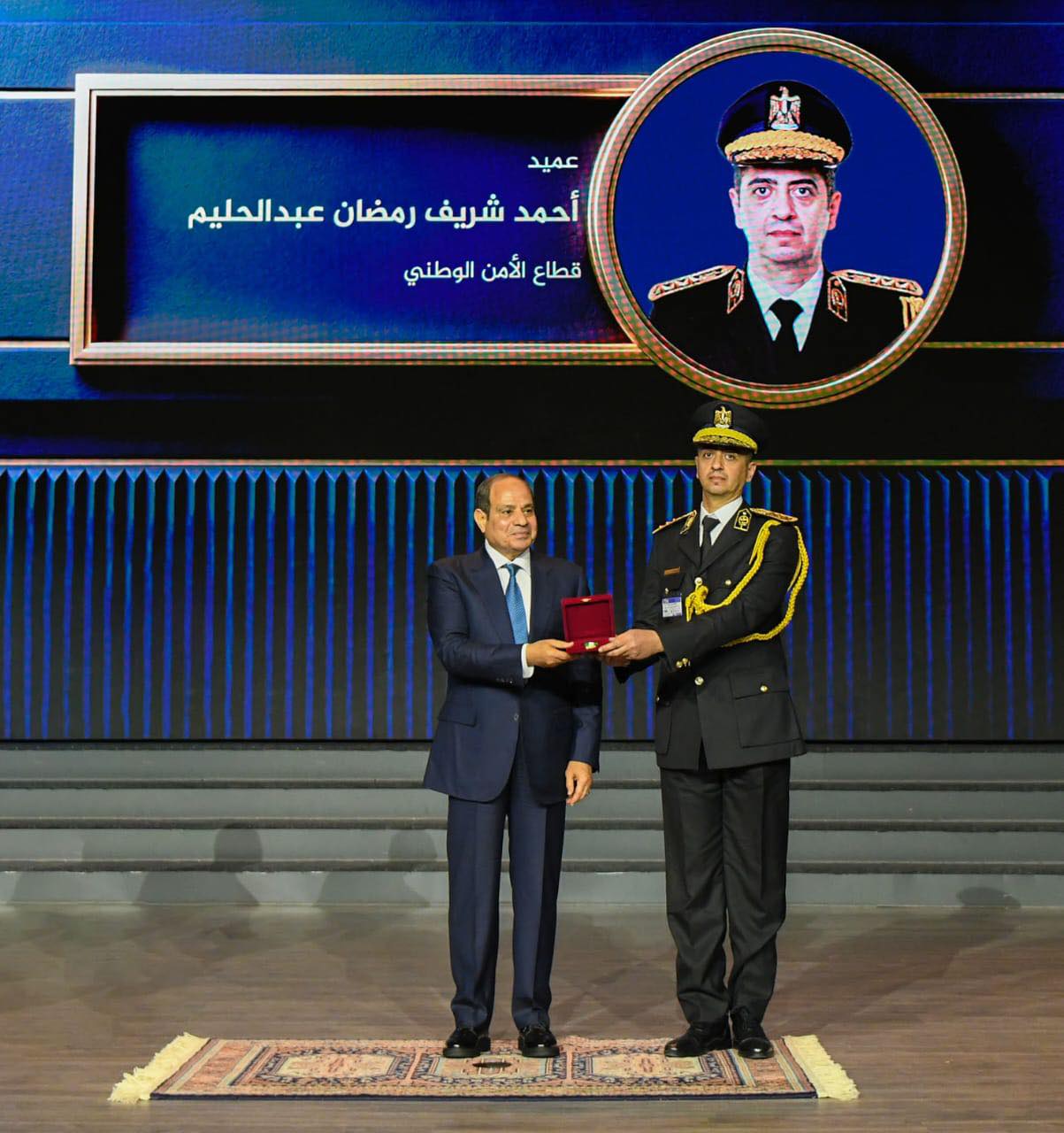 وصرح المتحدث الرسمي باسم رئاسة الجمهورية بأن حرس الشرف أدّى التحية العسكرية، وعزف السلام الوطني لجمهورية مصر العربية، ثم توجه الرئيس إلى النصب التذكاري لوضع أكليل من الزهور، وعزفت الموسيقى سلام الشهيد، ثم صافح سيادته السادة كبار رجال الدولة وأعضاء المجلس الأعلى للشرطة. وعقب ذلك، اجتمع الرئيس بأعضاء المجلس الأعلى للشرطة، وذلك بحضور الدكتور مصطفى مدبولي رئيس مجلس الوزراء، واللواء محمود توفيق وزير الداخلية. وبانتهاء الاجتماع، أهدى وزير الداخلية نسخة من المصحف الشريف للسيد الرئيس، ثم التقطت صورة تذكارية لرئيس الجمهورية مع أعضاء المجلس الأعلى للشرطة.