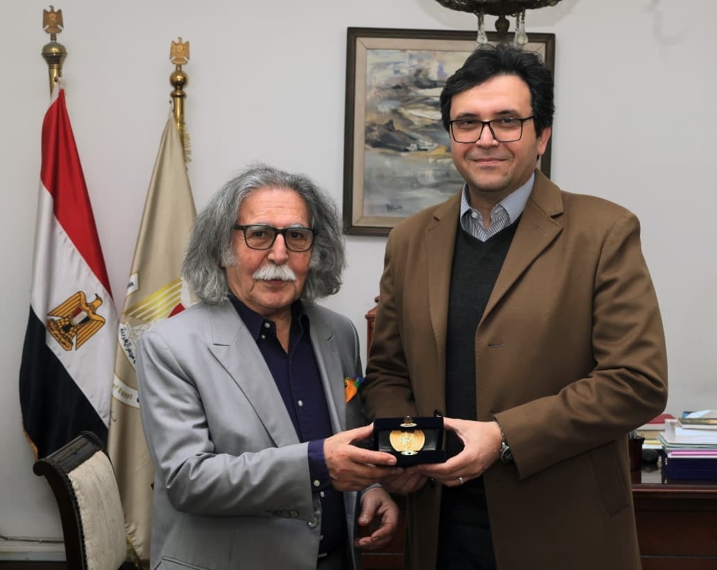 التقى الدكتور أحمد فؤاد هنو، وزير الثقافة، بالفنان التشكيلي العراقي رضا العزاوي، الحاصل على جائزة النيل للمبدعين العرب لعام 2023، وذلك في إطار تقدير الدولة المصرية لقامات الإبداع العربي التي أسهمت في تشكيل الوعي الفني والثقافي الحديث.