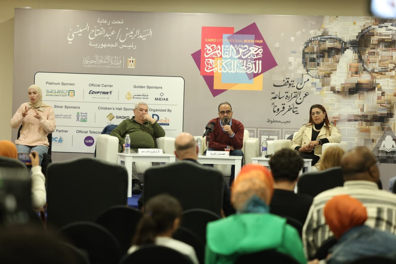 شهدت القاعة الرئيسية ببلازا 1، ضمن محور «شخصية المعرض نجيب محفوظ»، فعاليات معرض القاهرة الدولي للكتاب في دورته السابعة والخمسين، ندوة بعنوان «سينما نجيب محفوظ.. من النص الأدبي إلى الشاشة»، بمشاركة الدكتورة ثناء هاشم، أستاذ السيناريو بالمعهد العالي للسينما، والمؤرخ والناقد اللبناني إبراهيم العريس، وأدار الندوة الناقد والسينمائي عصام زكريا، بحضور الدكتور أحمد مجاهد، المدير التنفيذي للمعرض.