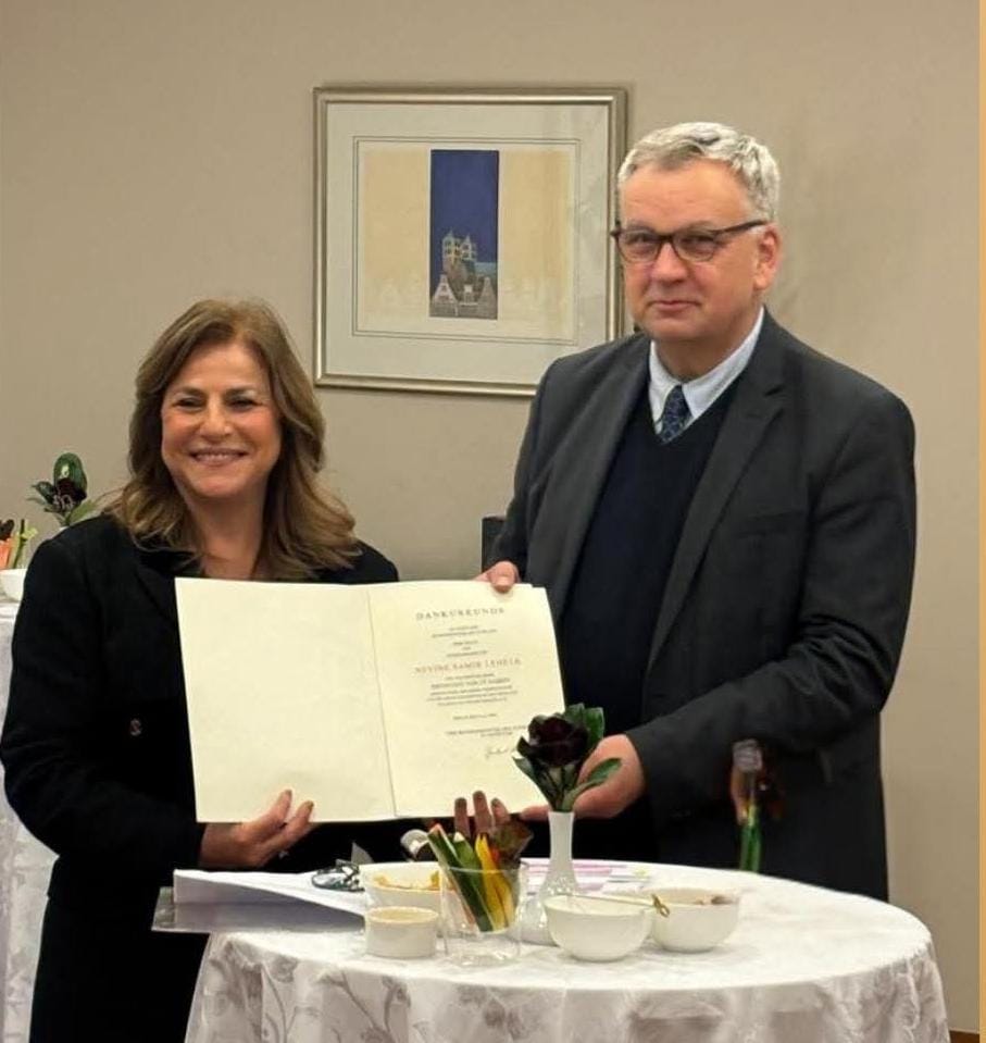 احتفلت سفارة ألمانيا الاتحادية بمرور 25 عامًا على تولي نيفين ليهتة مهامها قنصلًا فخريًا لجمهورية ألمانيا الاتحادية في الإسكندرية، تقديرًا لمسيرتها الحافلة بالعطاء والالتزام.