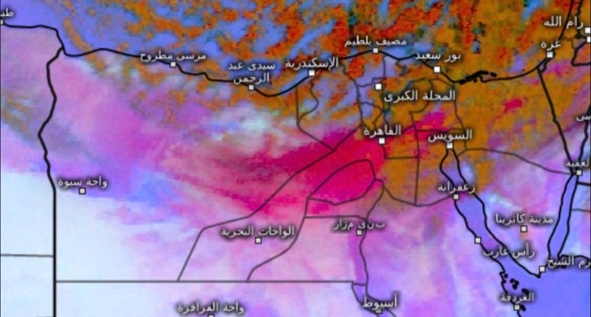 عاصفة ترابية على القاهرة الكبرى، وانخفضت الرؤية إلى نحو 200 متر.
