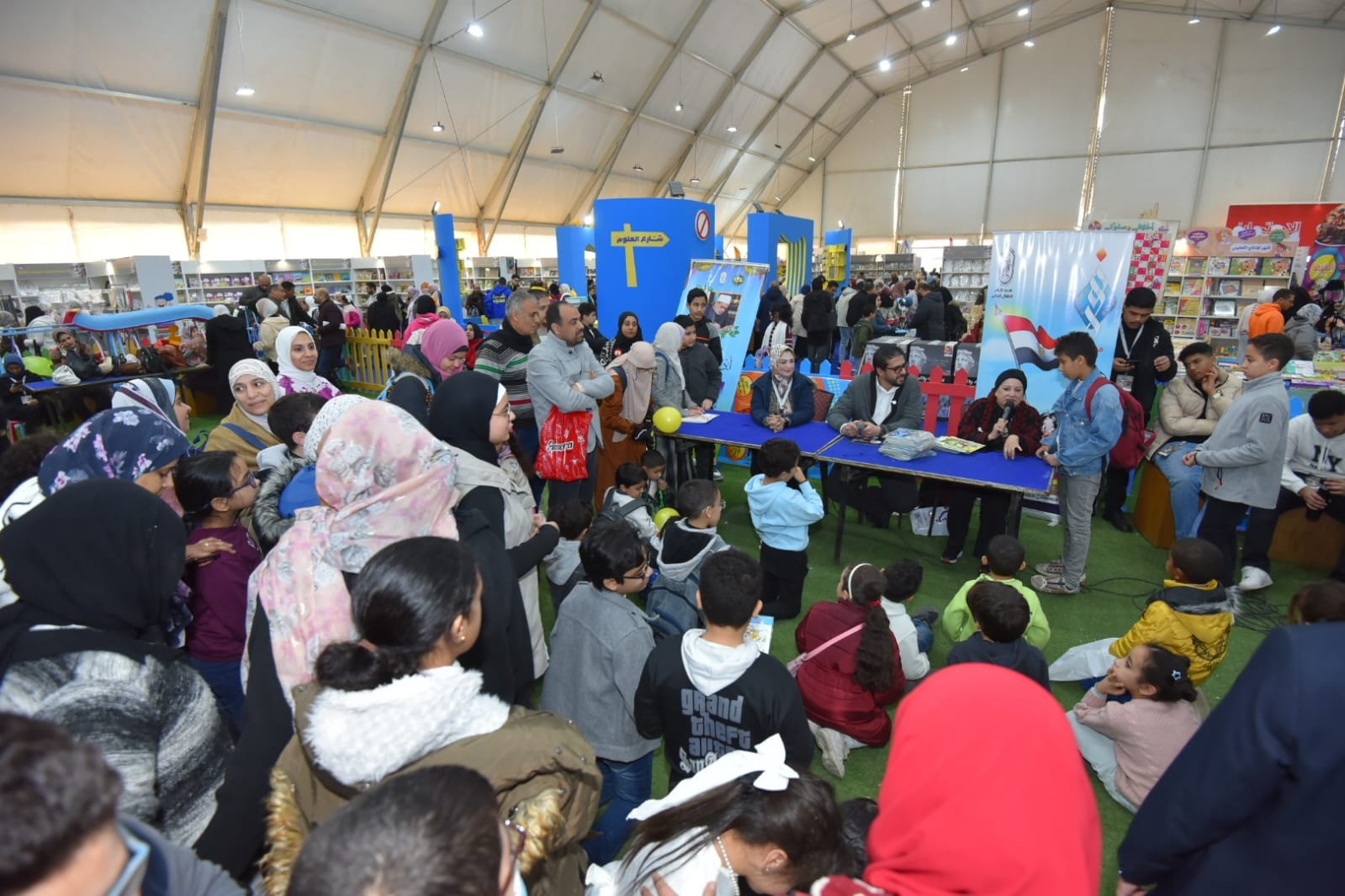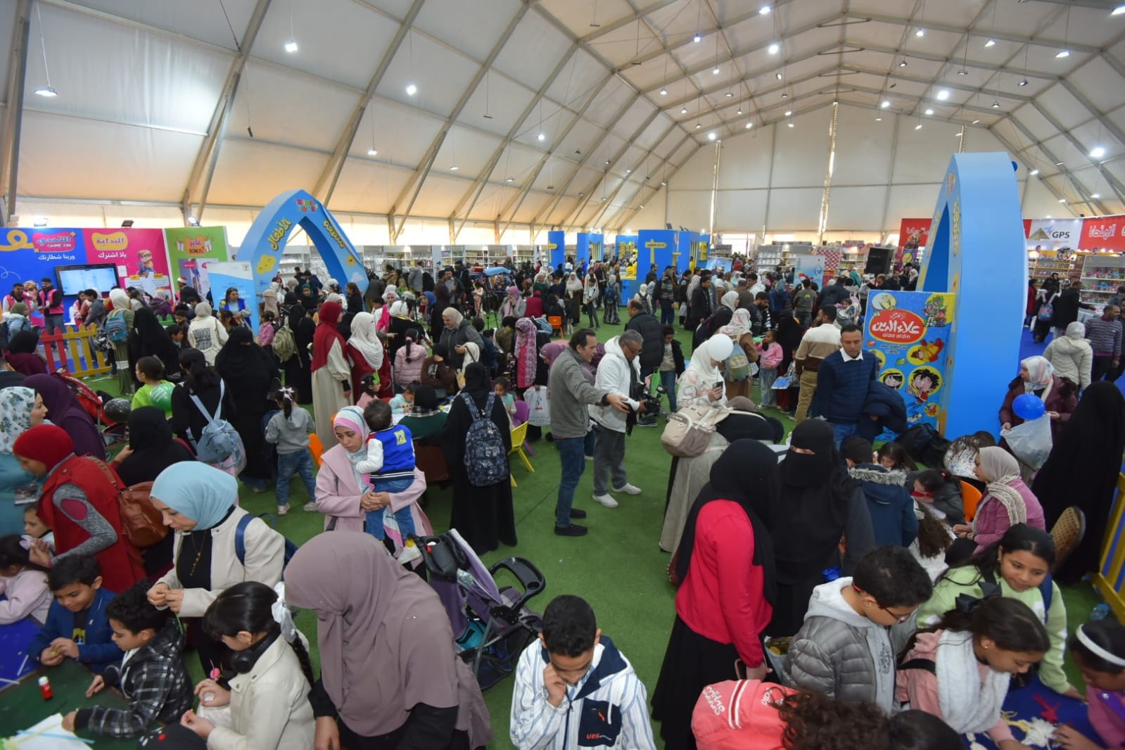 شهد نشاط الطفل بقاعة (5)، ضمن محور «الأنشطة الفنية» بفعاليات معرض القاهرة الدولي للكتاب في دورته السابعة والخمسين، إقبالًا كثيفًا وزحامًا ملحوظًا من الأطفال وأسرهم، حيث توافد الصغار بكثرة على الورش والألعاب والفعاليات المتنوعة.