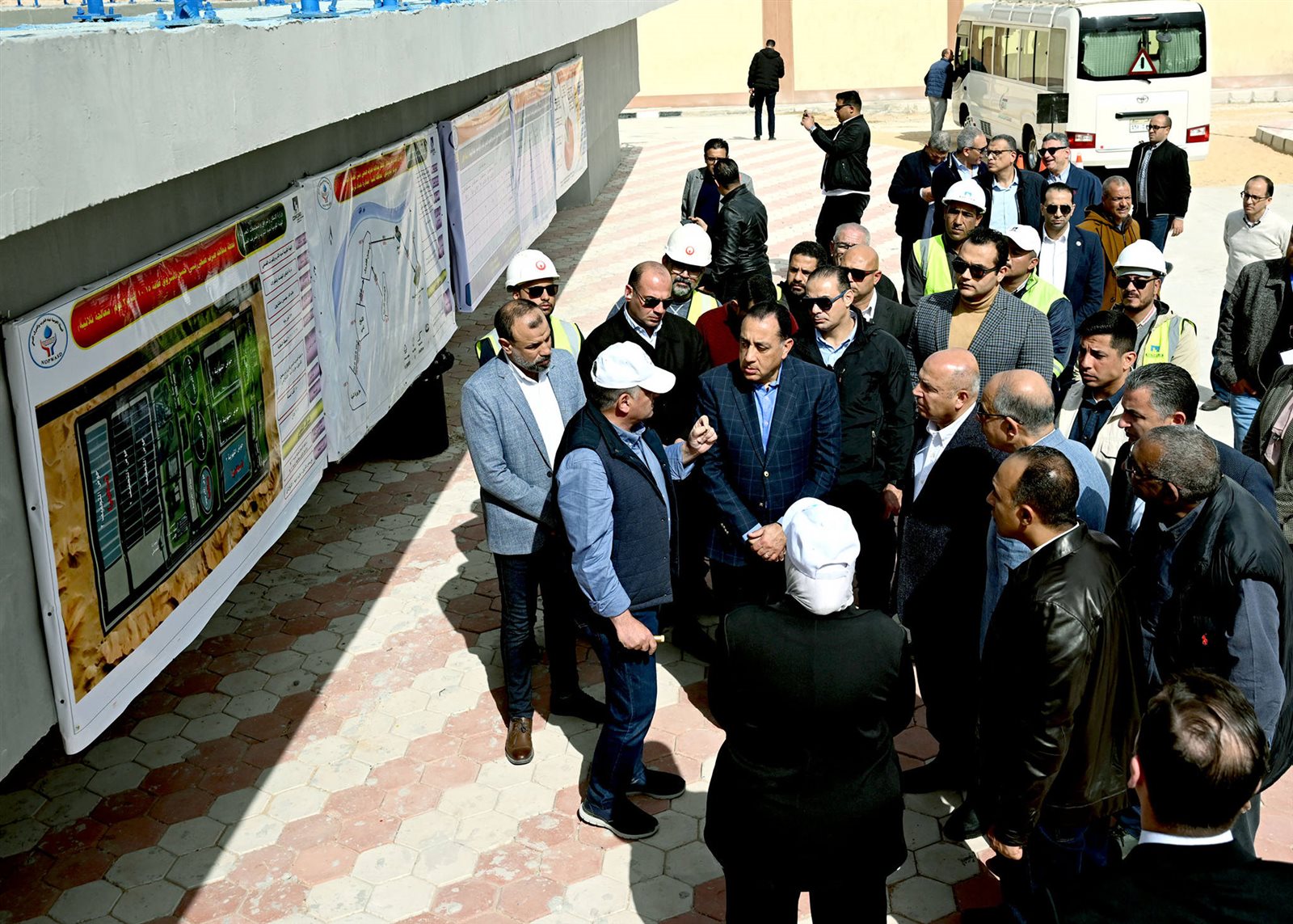 واستمع رئيس الوزراء، ومرافقوه، إلى شرح تفصيلي قدمه اللواء أمين شوقي، رئيس مجلس إدارة الهيئة القومية لمياه الشرب والصرف الصحي، أوضح فيه أن المشروع يمتد على مساحة تُقدَّر بـ9.5 فدان، بطاقة إنتاجية تصل إلى 10 - 15 ألف متر مكعب يوميًا، بنسبة إنجاز متقدمة.