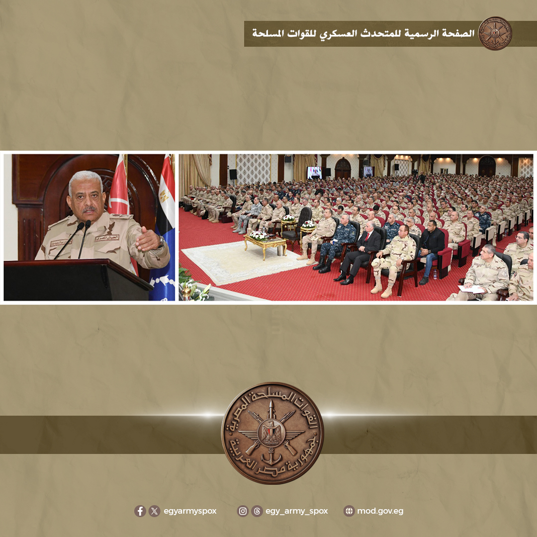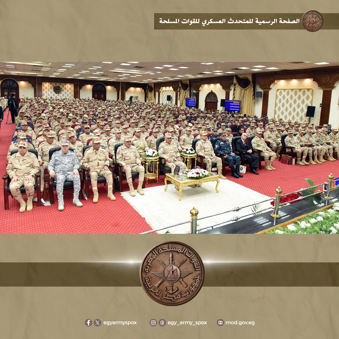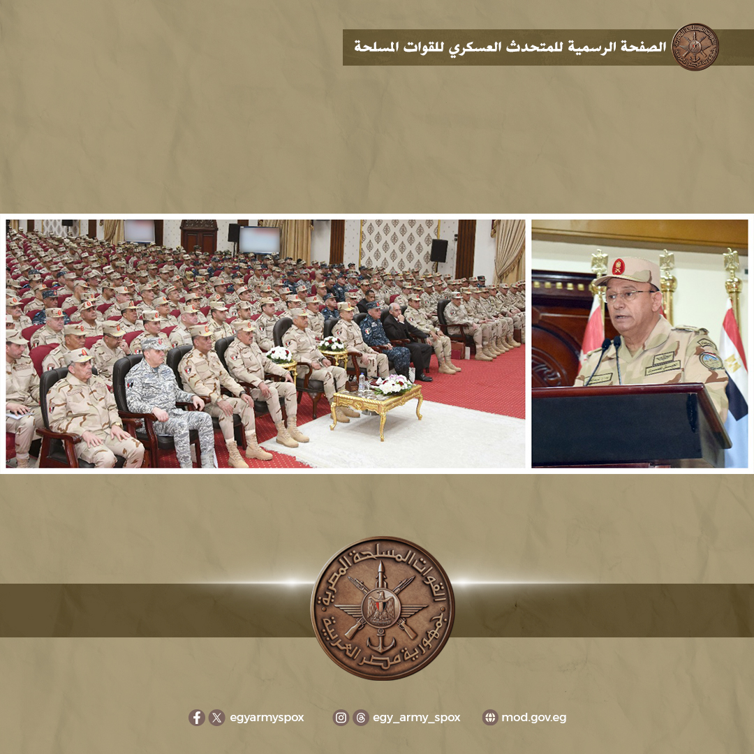 وألقى الفريق أول عبدالمجيد صقر القائد العام للقوات المسلحة وزير الدفاع والإنتاج الحربي كلمة نقل خلالها تحيات وتقدير الرئيس عبدالفتاح السيسي القائد الأعلى للقوات المسلحة واعتزازه بالجهد الذى يبذله رجال القوات المسلحة في صون مقدرات الوطن، مؤكداً على ضرورة قيام القادة والضباط على كافة المستويات بالمحافظة على مستوى الاستعداد القتالي لوحداتهم والاهتمام بالمقاتلين باعتبارهم الركيزة الأساسية لقواتنا المسلحة ليكونوا قادرين على تنفيذ مختلف المهام الموكلة إليهم بكفاءة وإتقان وروح معنوية عالية، وكذلك أهمية التسلح بالوعي المستنير لما تشهده المرحلة الحالية من تحديات للحفاظ على أمن الوطن وسلامة أراضيه.
