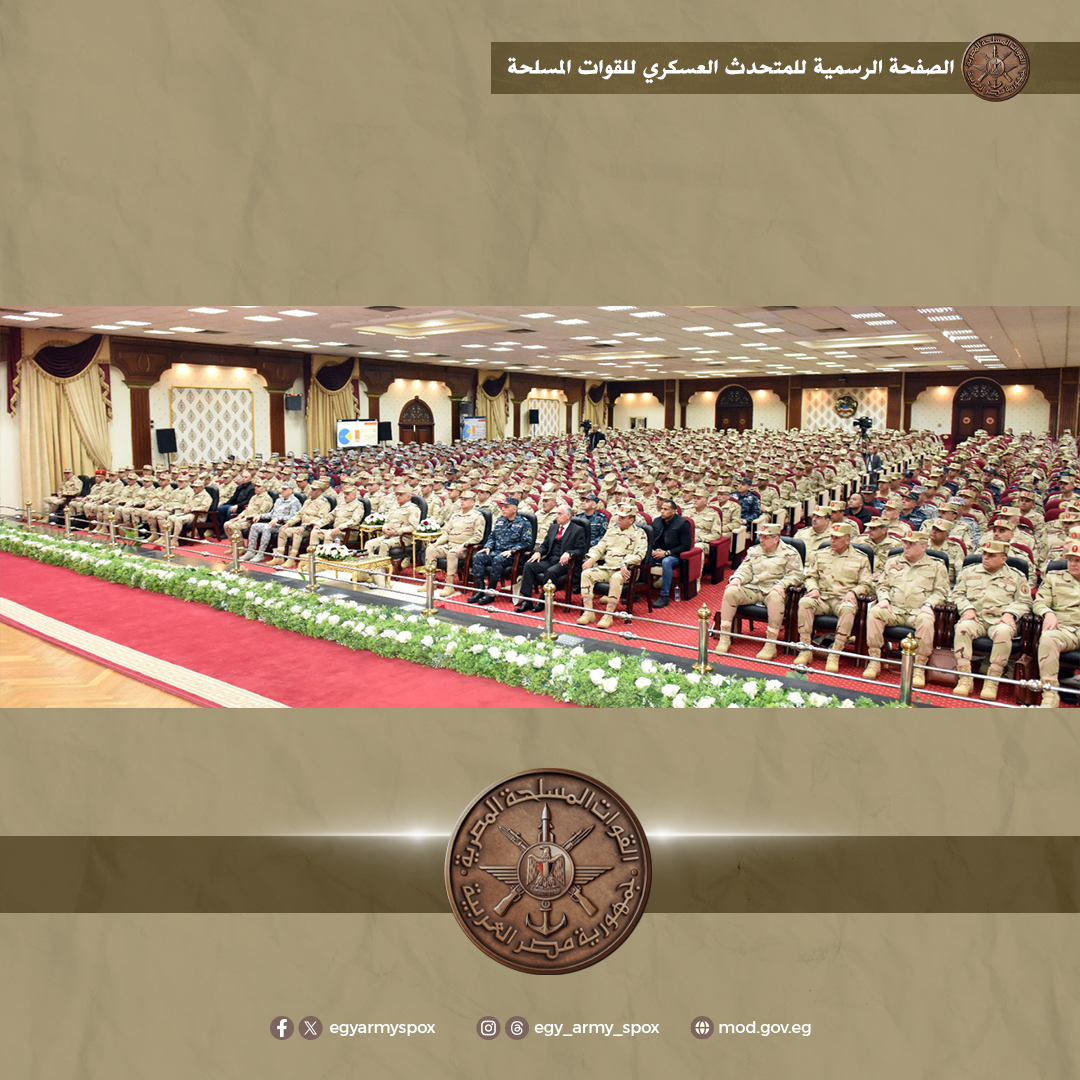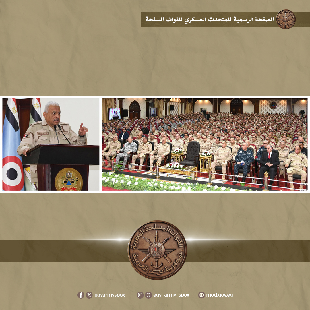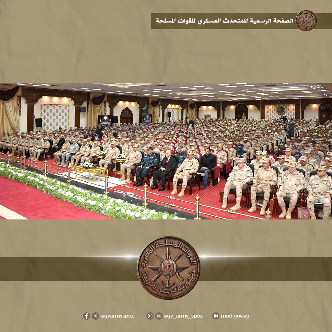 وألقى الفريق أول عبدالمجيد صقر القائد العام للقوات المسلحة وزير الدفاع والإنتاج الحربي كلمة نقل خلالها تحيات وتقدير الرئيس عبدالفتاح السيسي القائد الأعلى للقوات المسلحة واعتزازه بالجهد الذى يبذله رجال القوات المسلحة في صون مقدرات الوطن، مؤكداً على ضرورة قيام القادة والضباط على كافة المستويات بالمحافظة على مستوى الاستعداد القتالي لوحداتهم والاهتمام بالمقاتلين باعتبارهم الركيزة الأساسية لقواتنا المسلحة ليكونوا قادرين على تنفيذ مختلف المهام الموكلة إليهم بكفاءة وإتقان وروح معنوية عالية، وكذلك أهمية التسلح بالوعي المستنير لما تشهده المرحلة الحالية من تحديات للحفاظ على أمن الوطن وسلامة أراضيه.