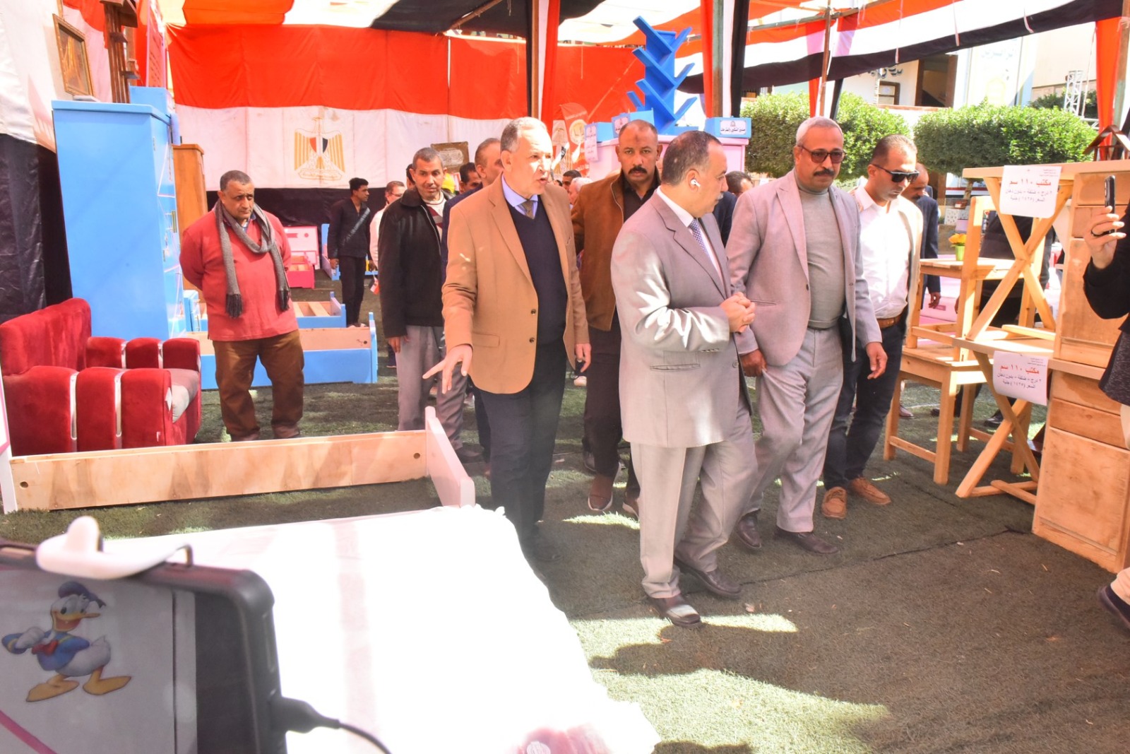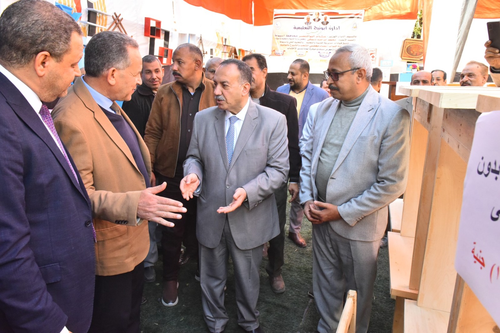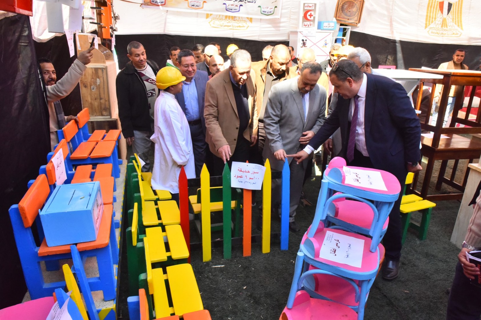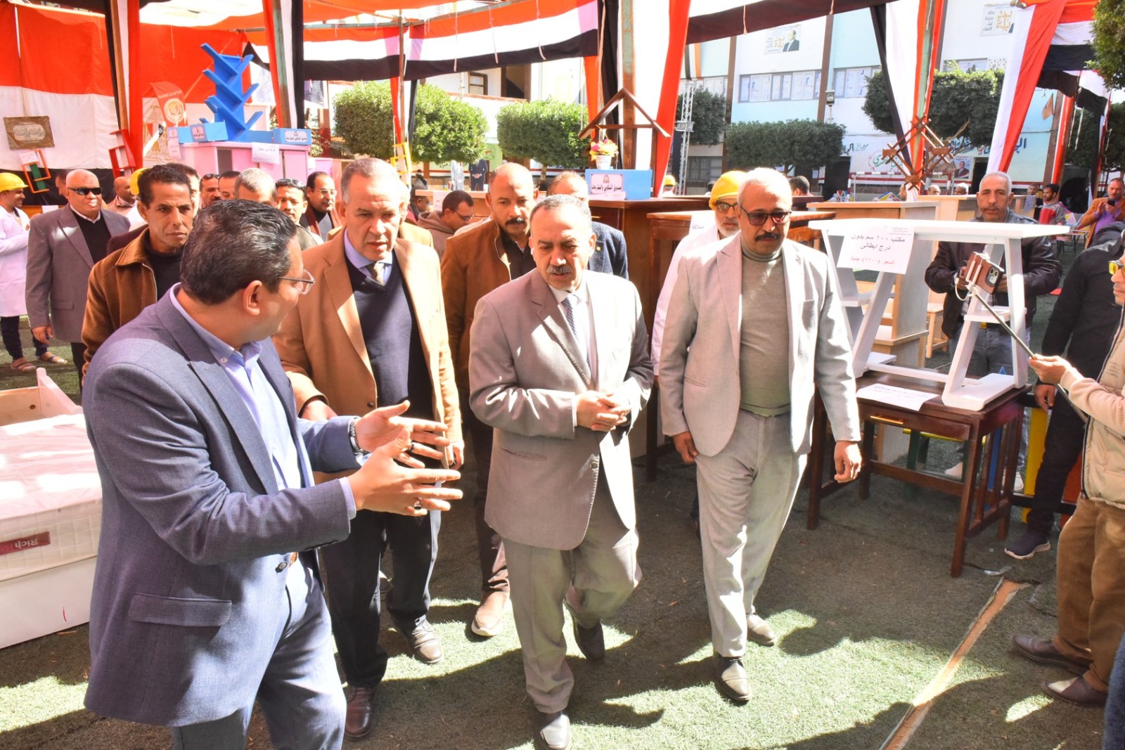 وقام محافظ أسيوط بقص شريط افتتاح المعرض، ثم تفقد أقسامه المختلفة، والتي ضمت مجموعة متنوعة من المنتجات المصنعة من الأخشاب المعاد تدويرها، شملت غرف نوم، وأثاثًا منزليًا، ومكاتب، وترابيزات، وكراسي، وانتريهات، ومشغولات خشبية وأعمال ديكور، بالإضافة إلى انتيكات وخلايا نحل، تم تنفيذها بالكامل بأيدي طلاب المدرسة وتحت إشراف المعلمين والمدربين المتخصصين بالمجال الصناعي.