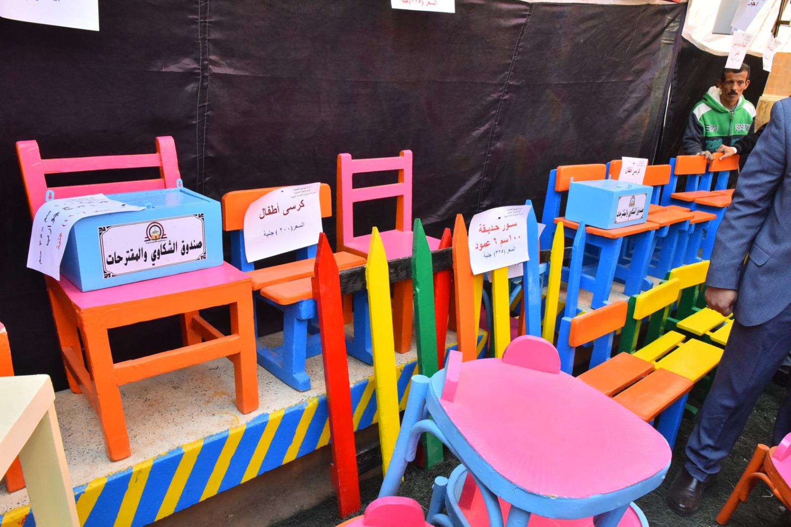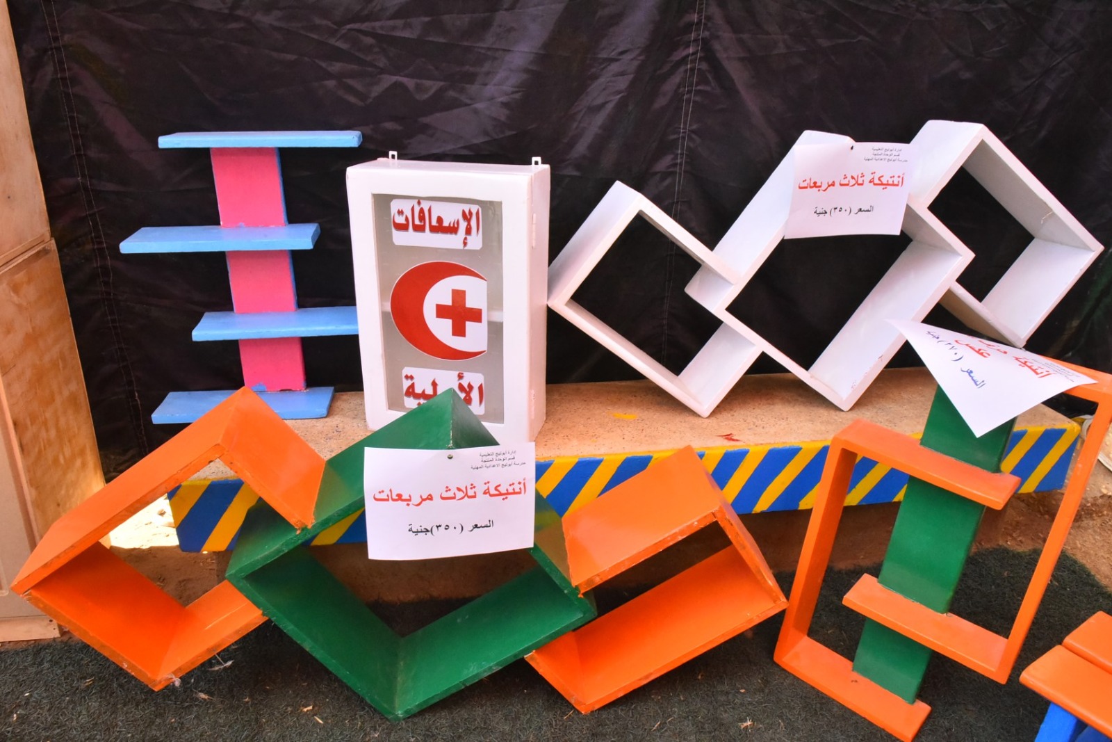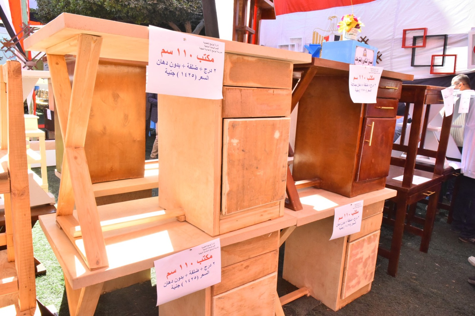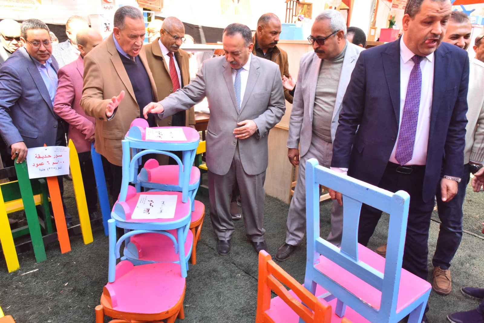 وقام محافظ أسيوط بقص شريط افتتاح المعرض، ثم تفقد أقسامه المختلفة، والتي ضمت مجموعة متنوعة من المنتجات المصنعة من الأخشاب المعاد تدويرها، شملت غرف نوم، وأثاثًا منزليًا، ومكاتب، وترابيزات، وكراسي، وانتريهات، ومشغولات خشبية وأعمال ديكور، بالإضافة إلى انتيكات وخلايا نحل، تم تنفيذها بالكامل بأيدي طلاب المدرسة وتحت إشراف المعلمين والمدربين المتخصصين بالمجال الصناعي.