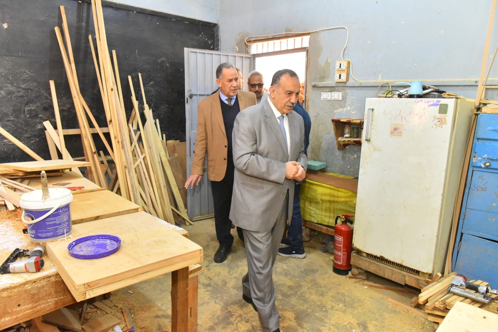 وعلى هامش الافتتاح، تابع اللواء دكتور هشام أبو النصر سير العمل داخل ورش المجال الصناعي بالمدرسة، واطلع على مراحل إعادة تدوير الرواكد الخشبية، بدءًا من الفرز والتجهيز وحتى التصنيع النهائي باستخدام المعدات الحديثة، مؤكدًا أهمية تحويل المدارس الفنية إلى وحدات إنتاجية فاعلة.