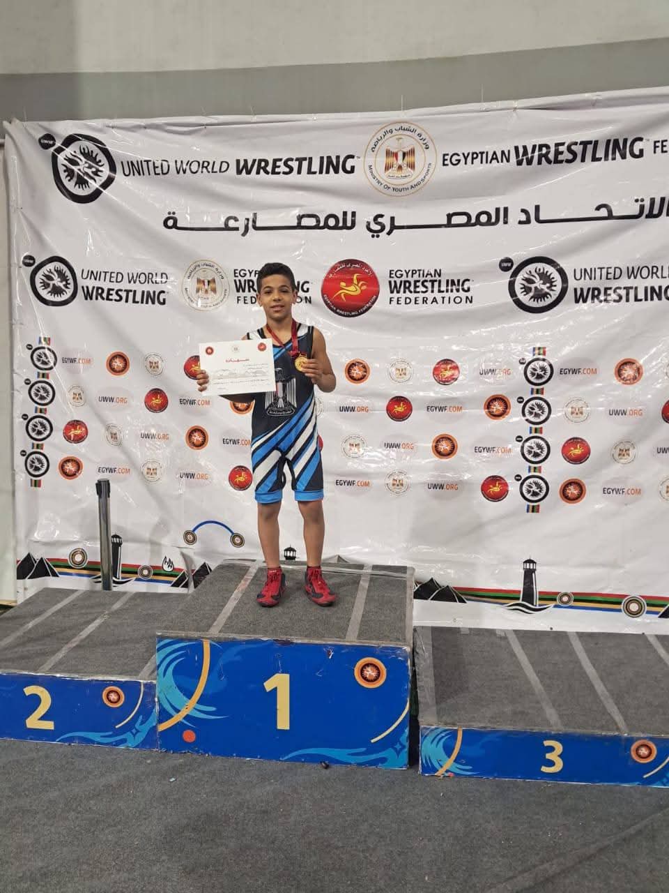 محافظ أسيوط يهنئ كريم عبدالرحمن لفوزه بذهبية بطولة الجمهورية للمصارعة للبراعم