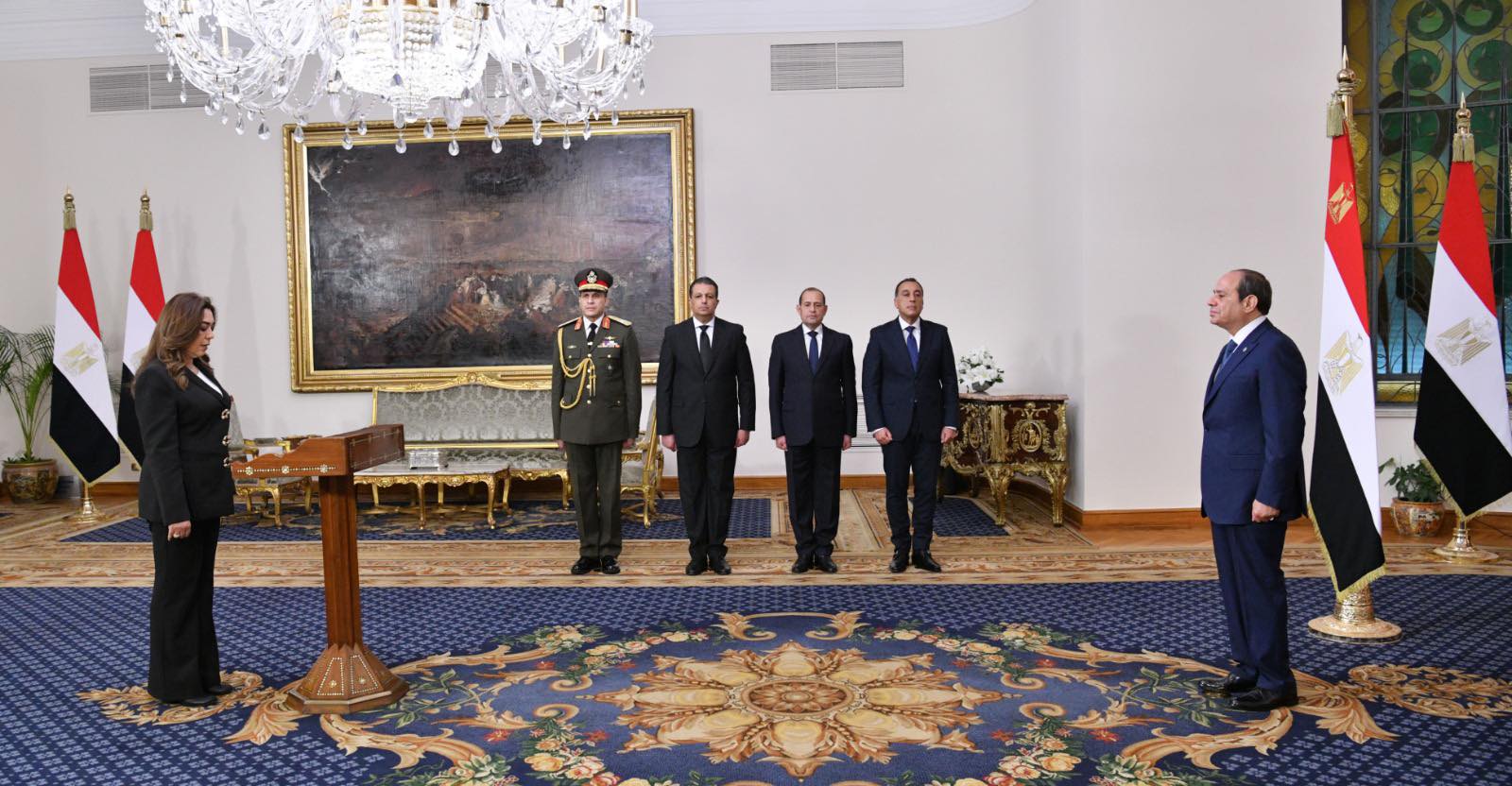 شهد الرئيس عبد الفتاح السيسي، صباح اليوم بمقر رئاسة الجمهورية بمصر الجديدة، أداء نائب رئيس مجلس الوزراء وعدد من الوزراء ونواب الوزراء الجدد اليمين الدستورية بحضور الدكتور مصطفى مدبولي رئيس مجلس الوزراء، وذلك في إطار التعديل الوزاري الجديد.