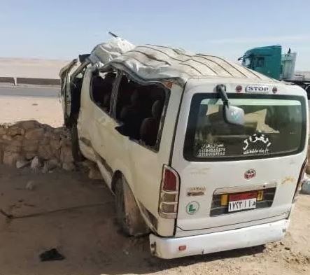 مصرع شخص وإصابة 12 آخرين في انقلاب ميكروباص على الصحراوي الشرقي بالمنيا