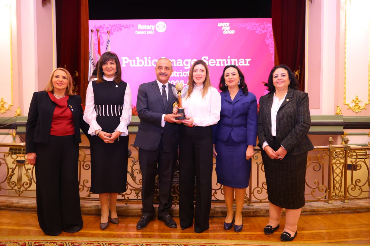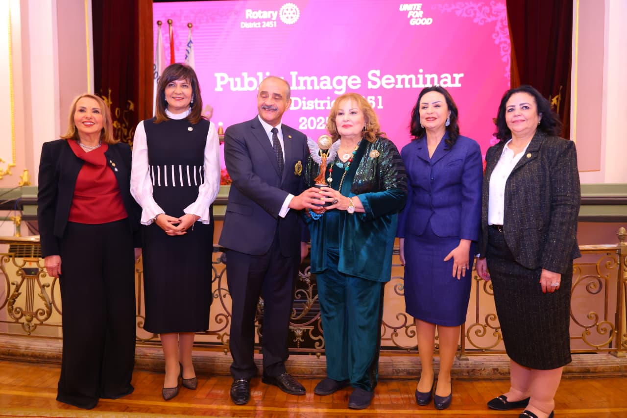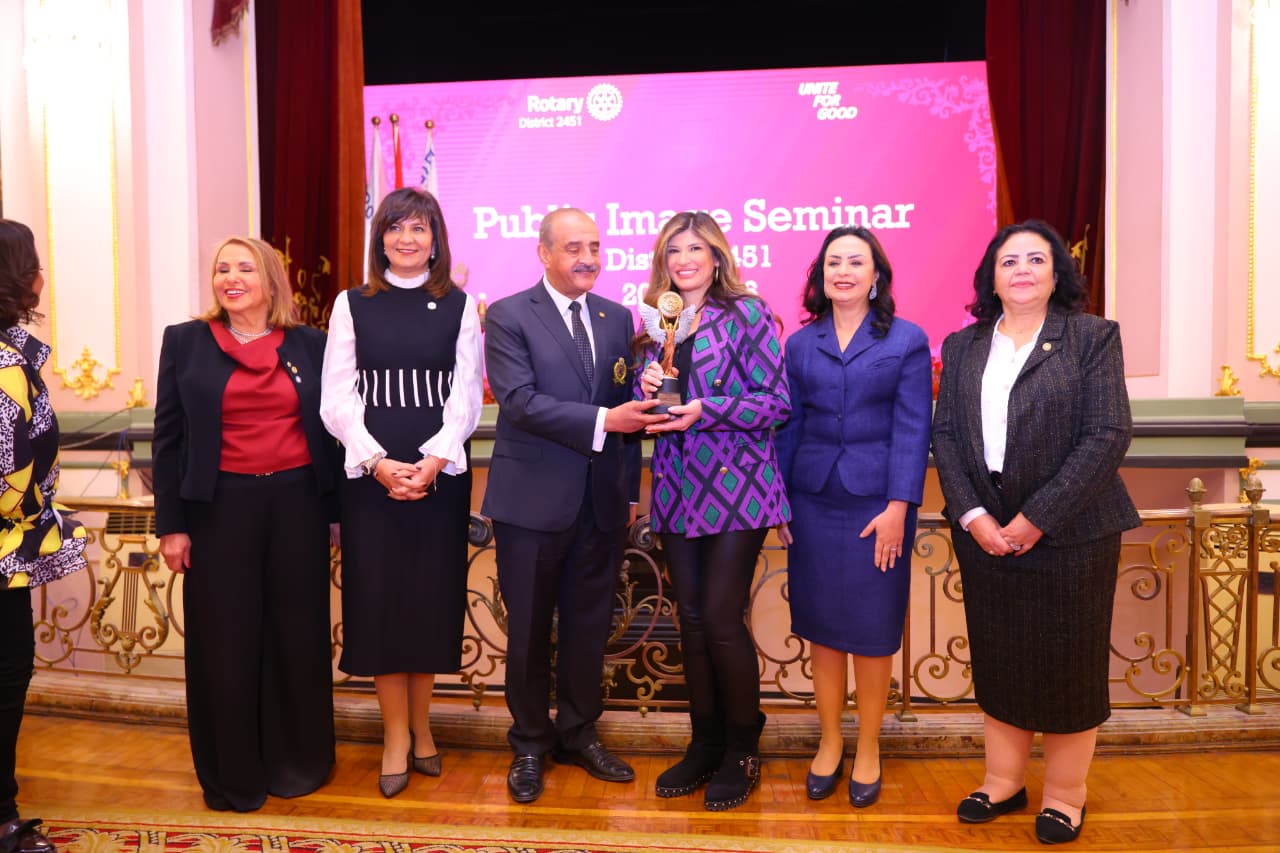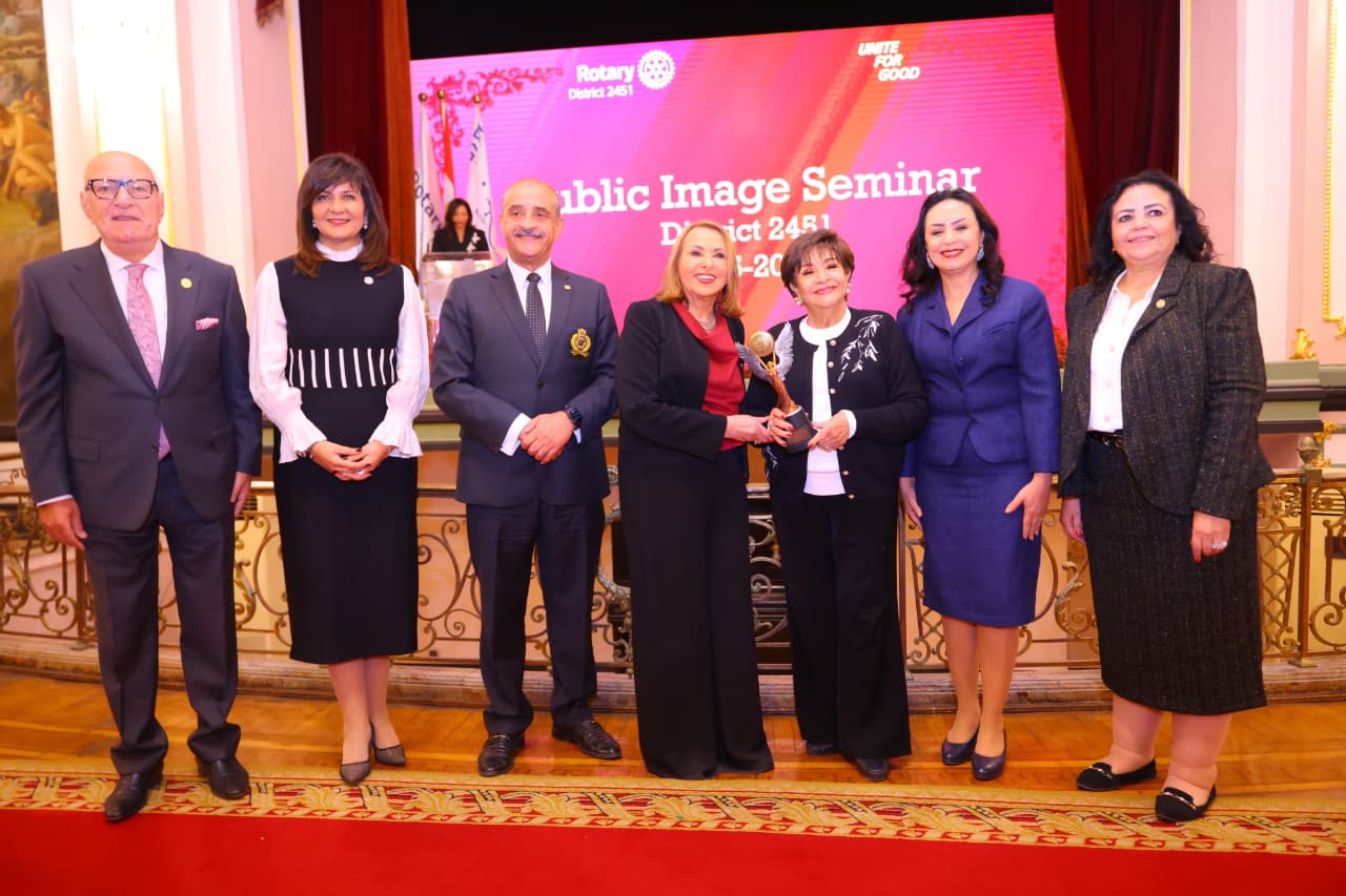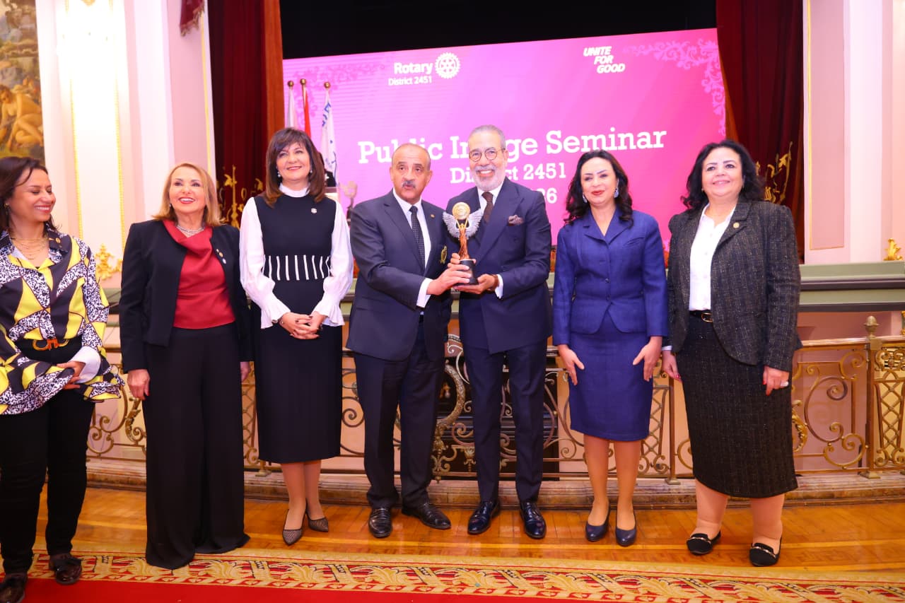 جاء ذلك بحضور الدكتور حسام فرحات، محافظ المنطقة الروتارية، والسفيرة نبيلة مكرم، رئيسة الأمانة الفنية للتحالف الوطني للعمل الأهلي التنموي، والموسيقار الكبير عمر خيرت، وماجدة الألفي، رئيس لجنة الصورة العامة بنادي روتاري مصر، ومحافظي الروتاري السابقين، ولفيف من كبار الكتّاب الصحفيين والإعلاميين والفنانين.