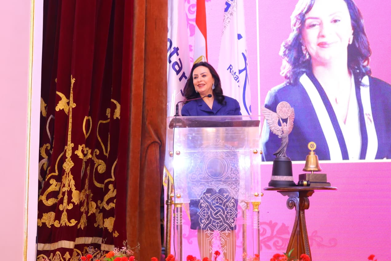 وأشارت وزيرة التضامن: «إلى أننا نتلاقى على أرض واحدة؛ ونتفق على أن الخدمة الحقيقية ليست حملةً موسمية، أو خواطر عابرة، لكنها خطةٌ، وشراكةٌ، ومؤشرات أداء، ولذلك فإننا نثمّن أدوار الروتاري في مساحات تمسُّ يوميا حياة المواطنين، الصحة الوقائية، ودعم التعليم، وتمكين المرأة والشباب، والمياه والصرف، وحماية البيئة، والتكيّف مع تغيّر المناخ، ومساندة ذوي الإعاقة»، وهذه ليست مجرد عناوين؛ بل خطوط تماسّ مع كرامة الإنسان المصري.