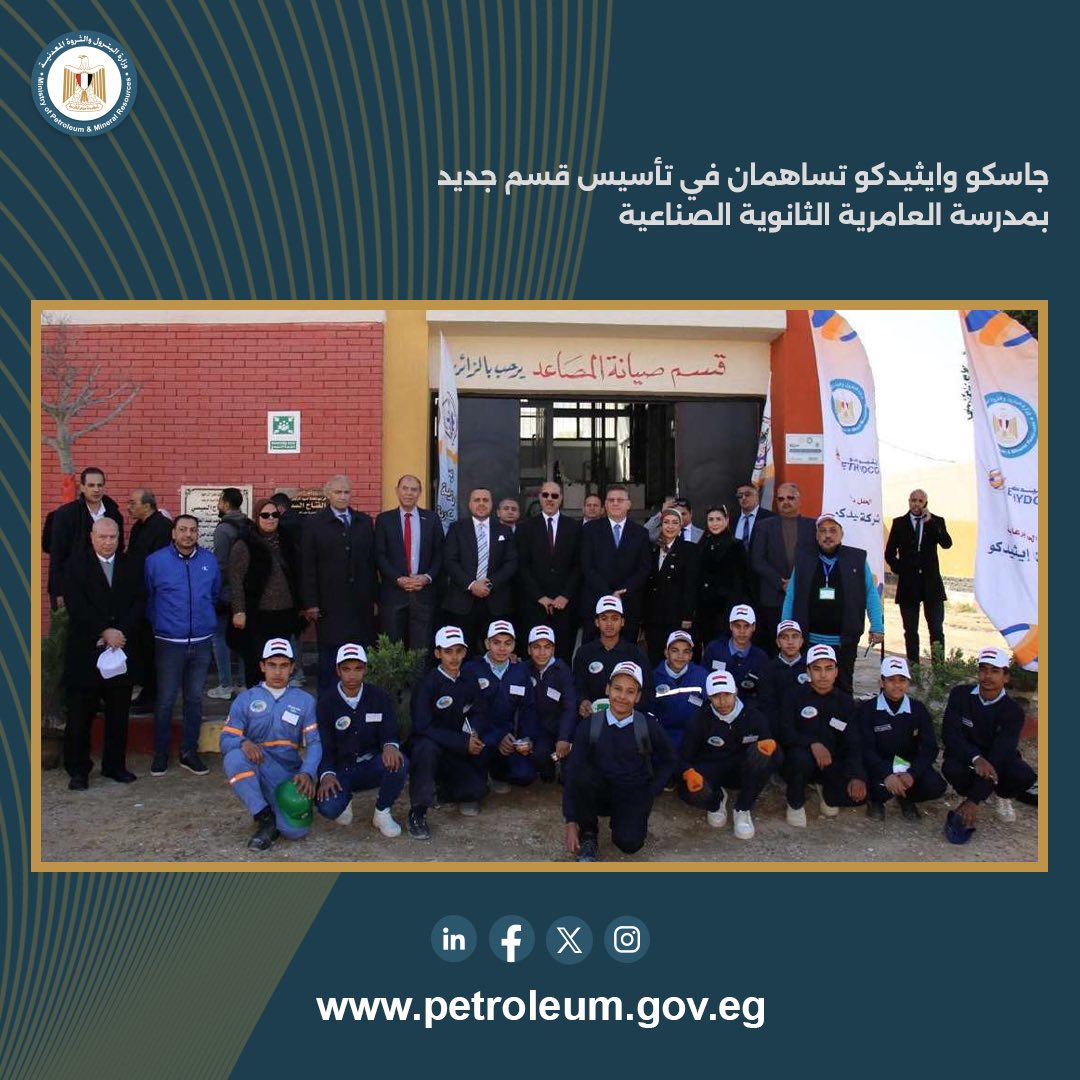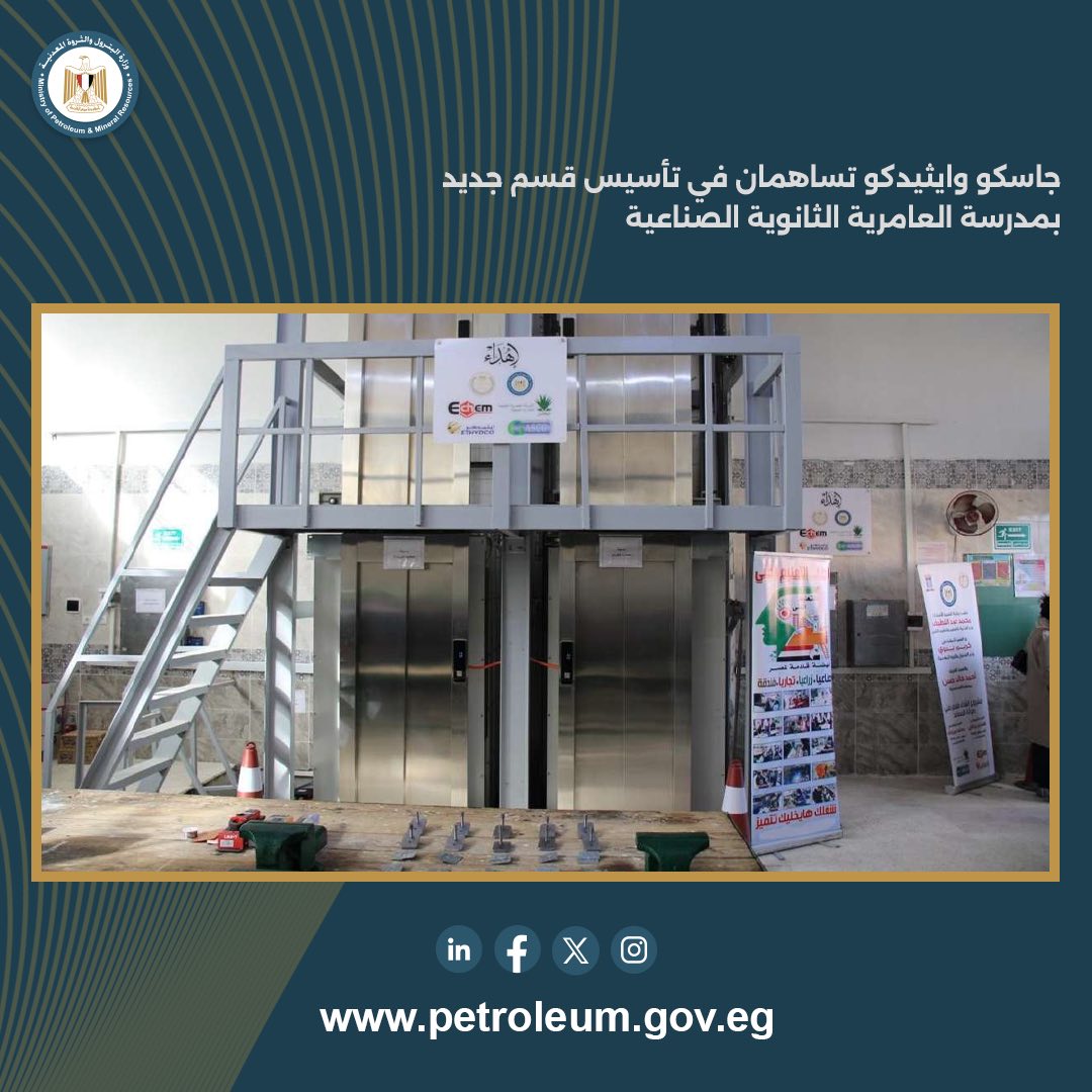 قدمت الشركة المصرية للغازات الطبيعية (جاسكو) والشركة المصرية لإنتاج الإيثيلين ومشتقاته (إيثيدكو)، الدعم والمساهمة في إنشاء قسم فني جديد بمدرسة العامرية الثانوية الصناعية بالإسكندرية، وذلك لصيانة المصاعد.