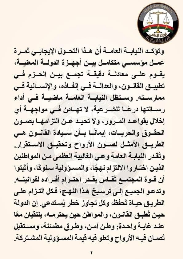 وإيمانًا منها بدور المواطن كشريك أساسي في تحقيق الأمن والسلامة على الطرق، فقد حرصت النيابة العامة على تطبيق القانون بكل حزم وجدية، بالتوازي مع اتباع نهج وقائي وتوعوي، يهدف إلى ترسيخ مبادئ احترام القانون.