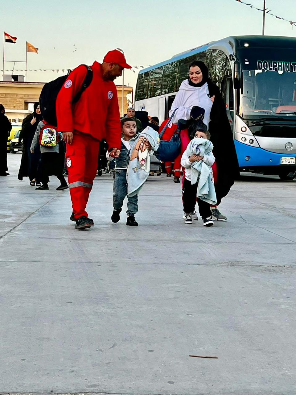ويقدم الهلال الأحمر للأشقاء الفلسطينيين حزمة متكاملة من الخدمات الإغاثية، تشمل الدعم النفسي للأطفال، خدمات إعادة الروابط العائلية، توزيع وجبات ساخنة، توفير الملابس الثقيلة ومستلزمات العناية الشخصية، وتوزيع «حقيبة العودة» على العائدين إلى القطاع.