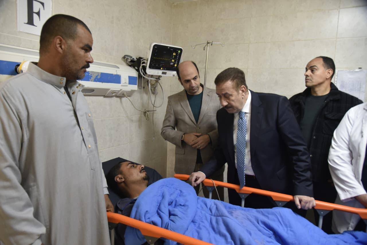 وخلال الزيارة، حرص المحافظ على تفقد المصابين والاطمئنان على حالتهم الصحية من خلال الاستماع إلى شرح تفصيلي من الأطباء القائمين على علاجهم بشأن طبيعة الإصابات والإجراءات الطبية المتبعة، مؤكدًا على توفير كافة أوجه الدعم والرعاية الصحية اللازمة لهم حتى تماثلهم الشفاء