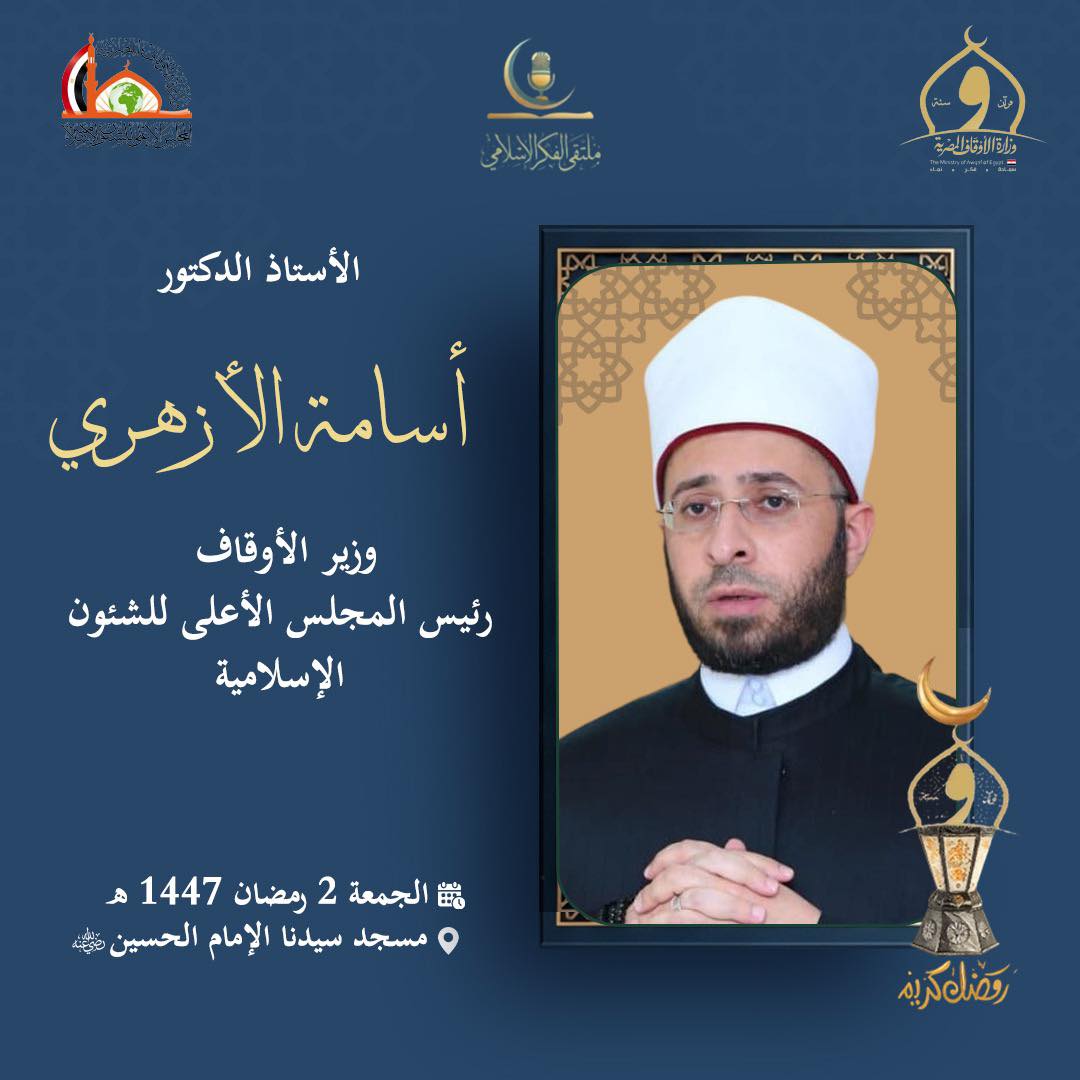 يفتتح الدكتور أسامة الأزهري، وزير الأوقاف، اليوم الجمعة، ملتقى الفكر الإسلامي، في ثوبه الجديد، بحضور ومشاركة كوكبة من العلماء؛ ليسطر حروفًا من الفكر المستنير ومن عبق التاريخ رؤيةً للمستقبل في حواره مع الإعلامي حسن الشاذلي، وذلك بعد صلاة التراويح.