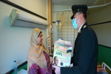 واصلت وزارة الداخلية جهودها المجتمعية والإنسانية، حيث وجهت مأموريات إلى عدد من المستشفيات على مستوى الجمهورية لتوزيع مساعدات عينية على المرضى ومشاركتهم الاحتفال بشهر رمضان المبارك.