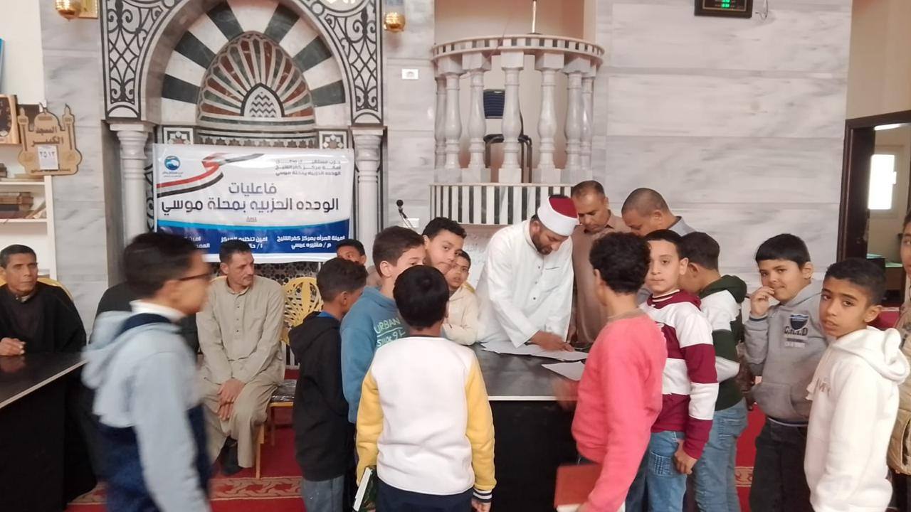 نظم حزب مستقبل وطن بمركز كفر الشيخ تصفيات مسابقة القرآن الكريم بالوحدة الحزبية بمحلة موسى، في أجواء إيمانية مميزة تعكس اهتمام الأمانة برعاية حفظة كتاب الله، وتشجيع النشء والشباب على التمسك بالقيم الدينية والأخلاقية.