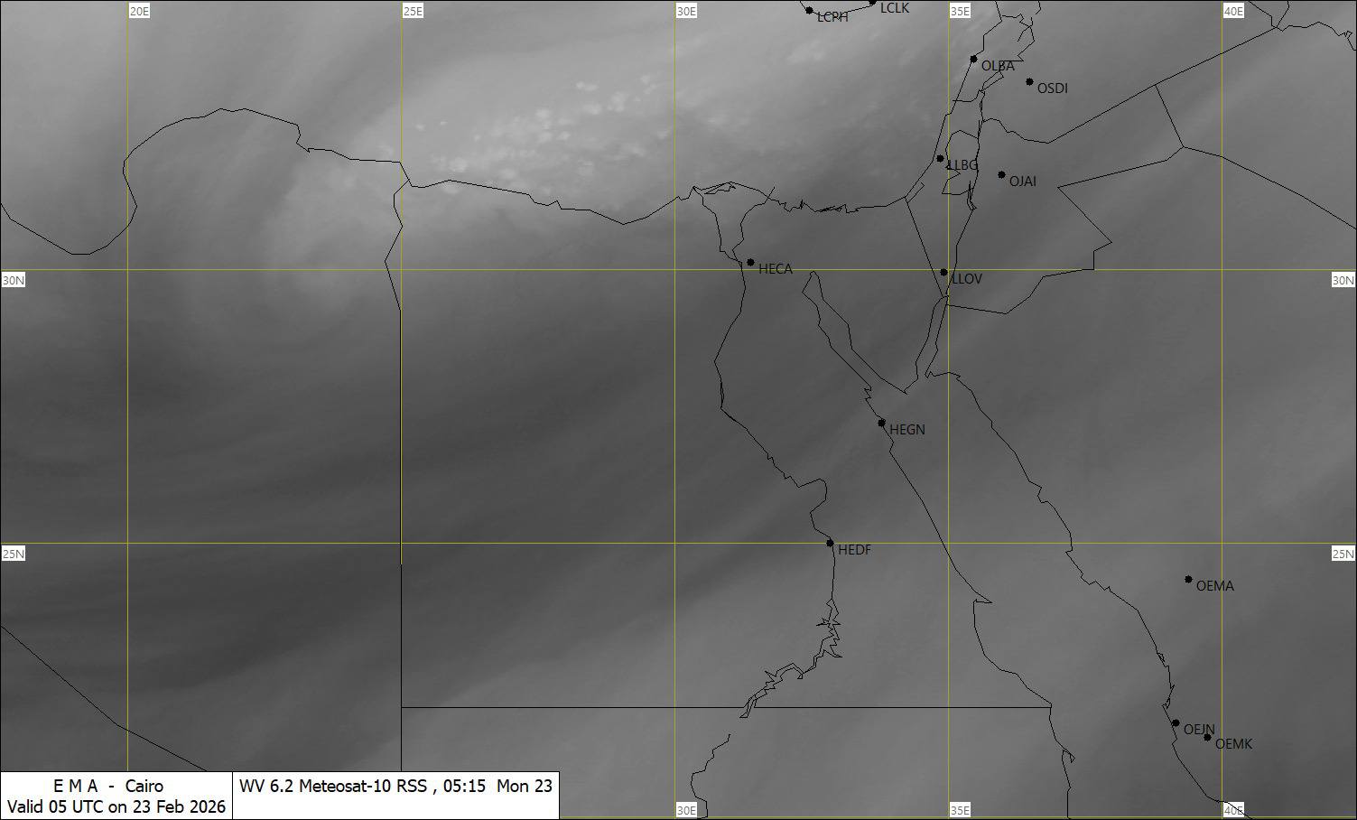 قالت الهيئة العامة للأرصاد الجوية، إنه من متابعة صور الأقمار الصناعية تظهر السحب المنخفضة والمتوسطة على مناطق متفرقة من السواحل الشمالية الغربية (الإسكندرية- مطروح) ومناطق من الوجه البحري (البحيرة- كفر الشيخ- الغربية) يصاحبها فرص أمطار متفاوتة الشدة.