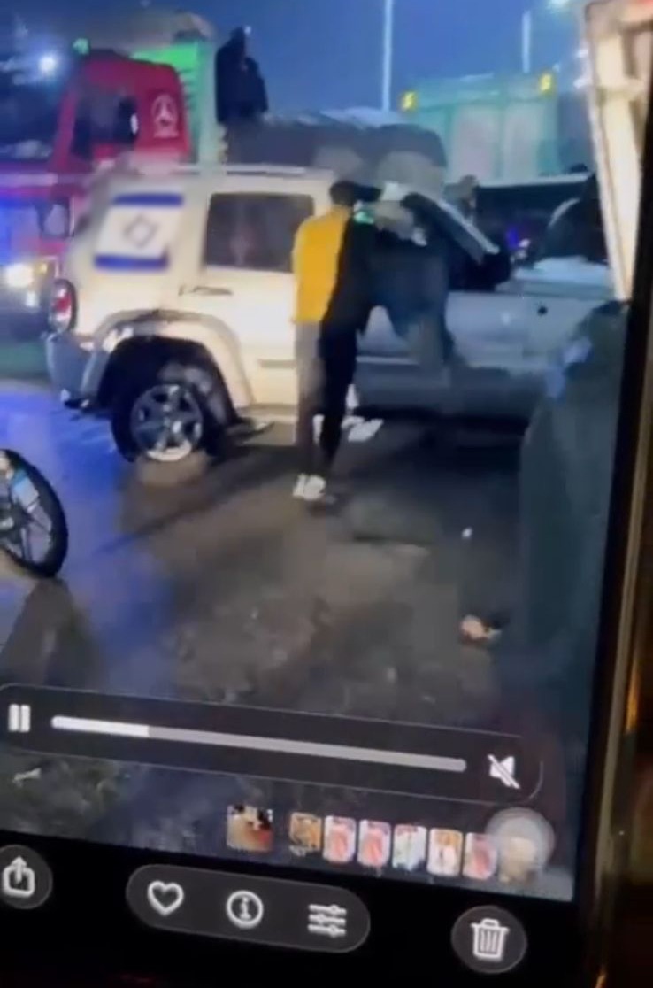 ولدى مشاهدة المارة للمشاجرة والعلم المثبت على السيارة قاموا بالتعدي على قائد السيارة بالضرب، وأثناء محاولته الإفلات اصطدم بعدد من المواطنين والمركبات تصادف مرورهم بالمنطقة، مما أسفر عن إصابة 6 أشخاص بكسور وكدمات متفرقة، وتم نقلهم لعدد من المستشفيات لتلقي العلاج اللازم.