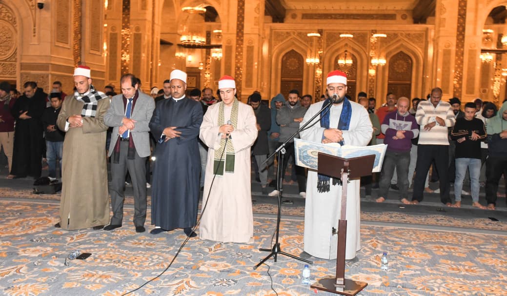 في مسجد الإمام الحسين أمَّ فضيلة الشيخ محمود عبد الباسط الحسيني وفضيلة الشيخ خالد عطية جموعَ المصلين، فانبثقت التلاوات نديةً خاشعةً، تمزج بين جمال الأداء وإتقان الأحكام، فيما أضفى المبتهل حسين السويفي بأدعيته وابتهالاته روحانيةً خاصة على أجواء الليلة، فتعالت الأكفُّ بالدعاء وخشعت القلوب بين يدي الله.