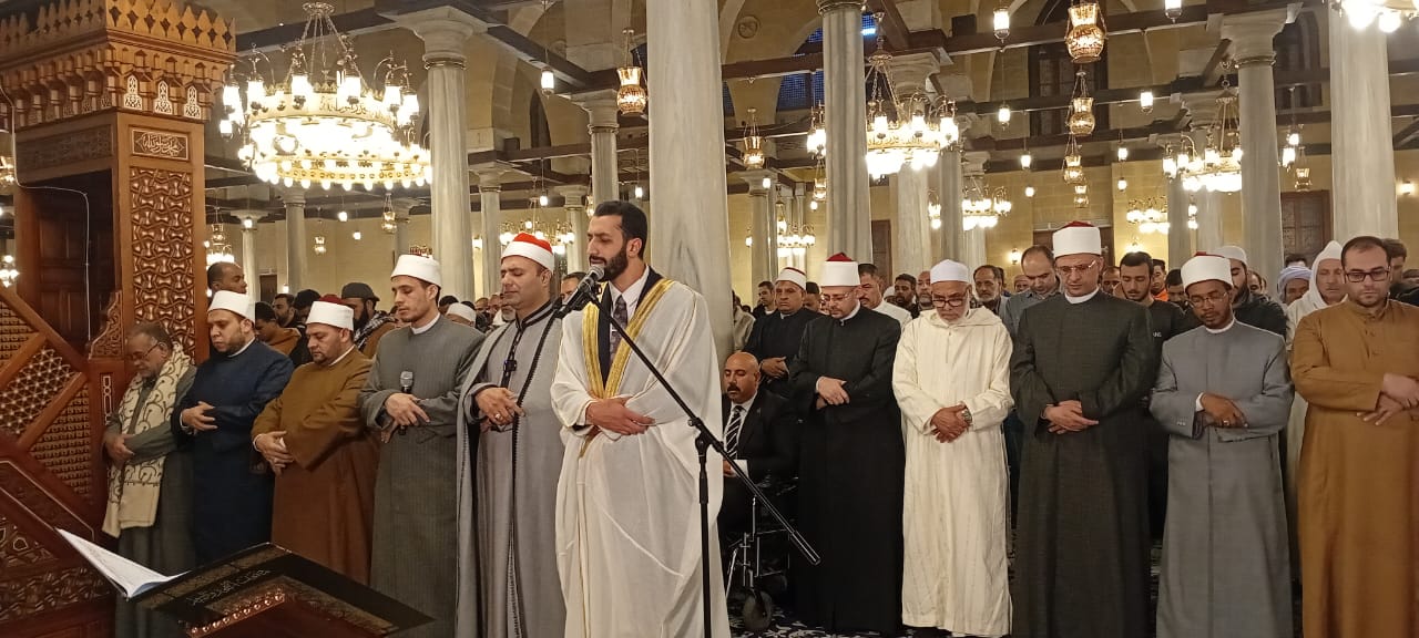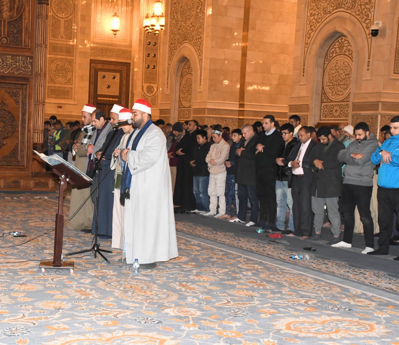 كما أمَّ فضيلة الشيخ أحمد السيد رشاد المصلين في مسجد العزيز الحكيم، مقدمًا تلاوةً نديةً جمعت بين قوة الأداء وعذوبة الصوت، فيما أمَّ فضيلة الشيخ علي أحمد جموعَ المصلين في مسجد عمرو بن العاص، في ليلةٍ تجلت فيها معاني الطمأنينة والخشوع.