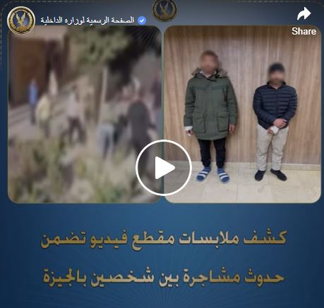 كشفت الأجهزة الأمنية بوزارة الداخلية ملابسات مقطع فيديو تم تداوله على نطاق واسع عبر صفحات التواصل الاجتماعي، يوثق نشوب مشاجرة عنيفة بين شخصين بمحافظة الجيزة، وتبادلهما الضرب والتراشق بالحجارة وسط حالة من الذعر بين المارة.