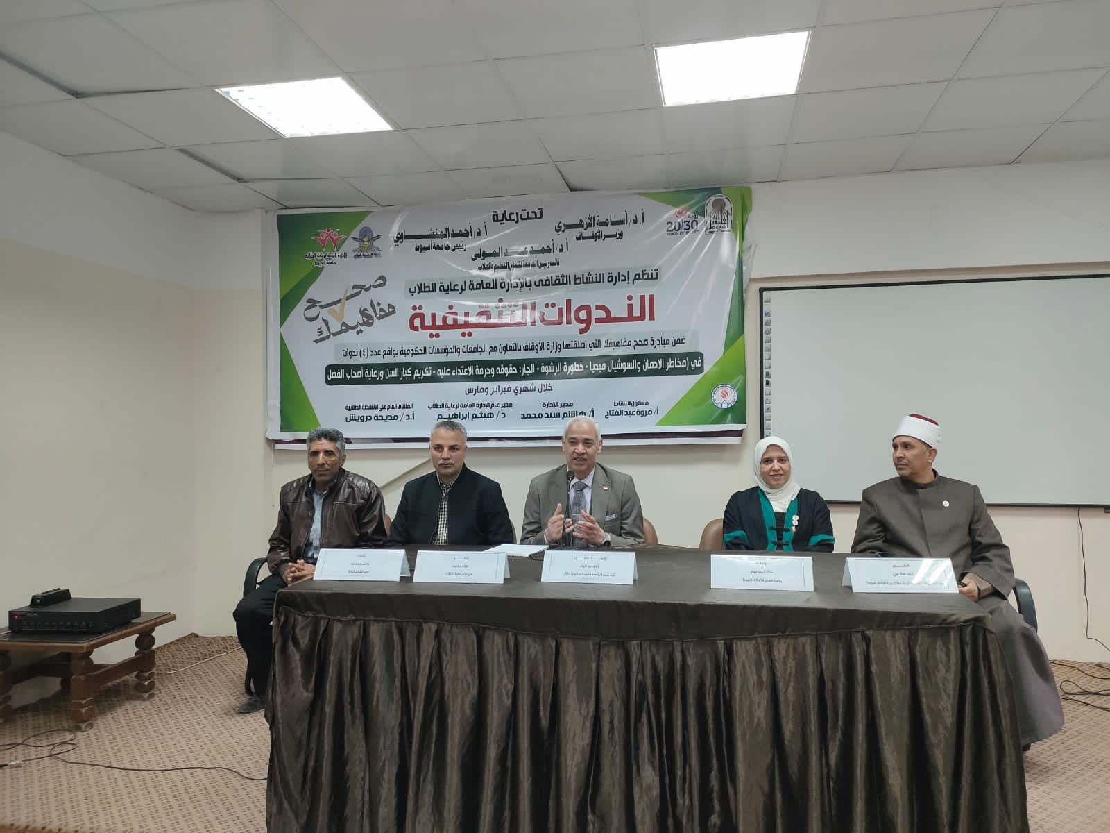 وفي جامعة أسيوط، نُظمت عدة محاضرات توعوية؛ حيث عُقدت محاضرة بعنوان (مخاطر إدمان السوشيال ميديا)، حاضر فيها الدكتور أسامة عوض عبد الله، إمام وخطيب بوزارة الأوقاف، والدكتورة سماح محمد أحمد، واعظة دينية بوزارة الأوقاف وأستاذة بكلية البنات الإسلامية بجامعة الأزهر.