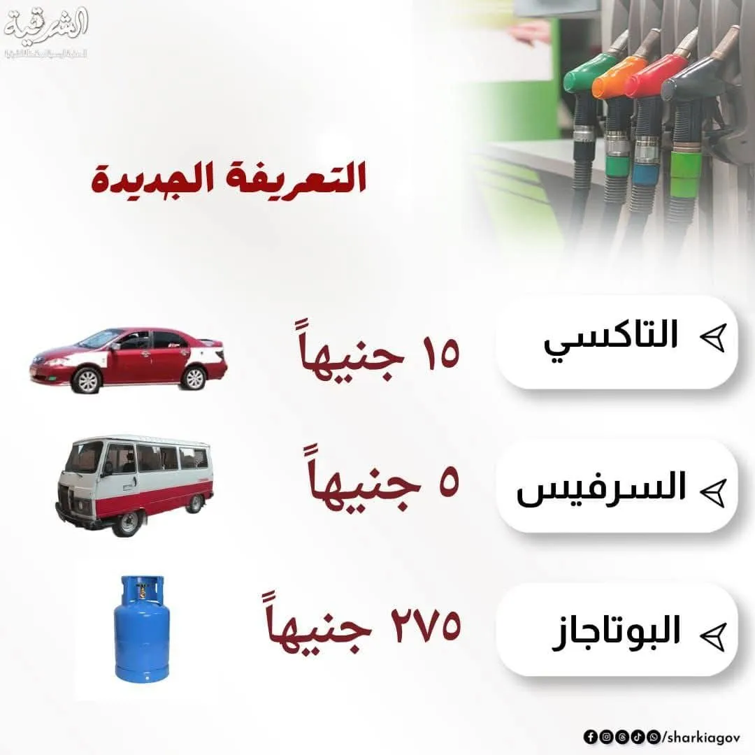 رسميًا.. اعتماد تعريفة جديدة لسيارات الأجرة والسرفيس وتحديد أسعار أسطوانات البوتاجاز بالشرقية