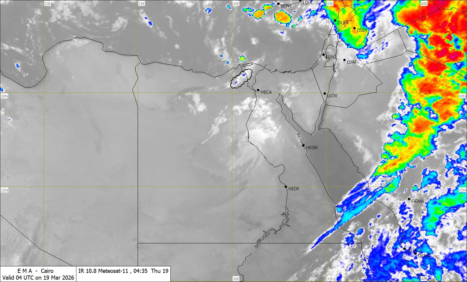 كما تشير آخر صور الأقمار الصناعية إلى السحب الرعدية الممطرة على مناطق من الإسكندرية وشمال الوجه البحري، وسحب متوسطة على مناطق من جنوب القاهرة وشمال الصعيد وخليج السويس.