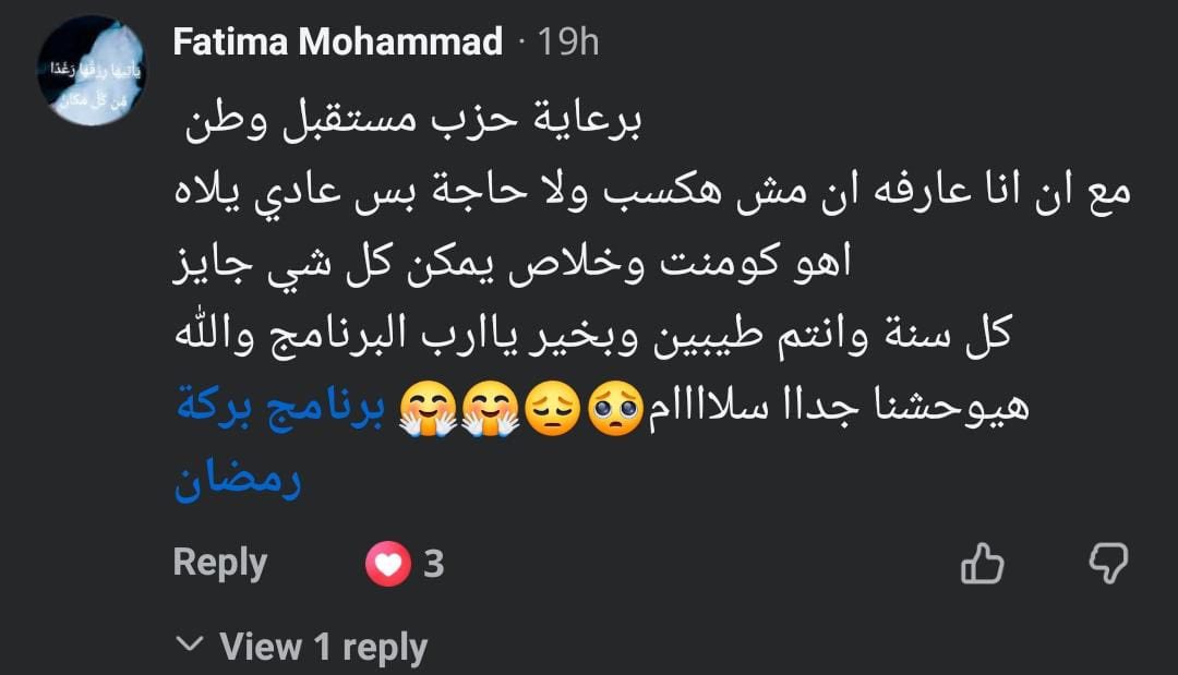 ووجهت إدارة “بركة رمضان” الشكر لكل المشاركين، مع دعوة الجمهور للمشاركة في السؤال الأخير من البرنامج، متمنين للجميع دوام الصحة والسعادة بمناسبة عيد الفطر المبارك.