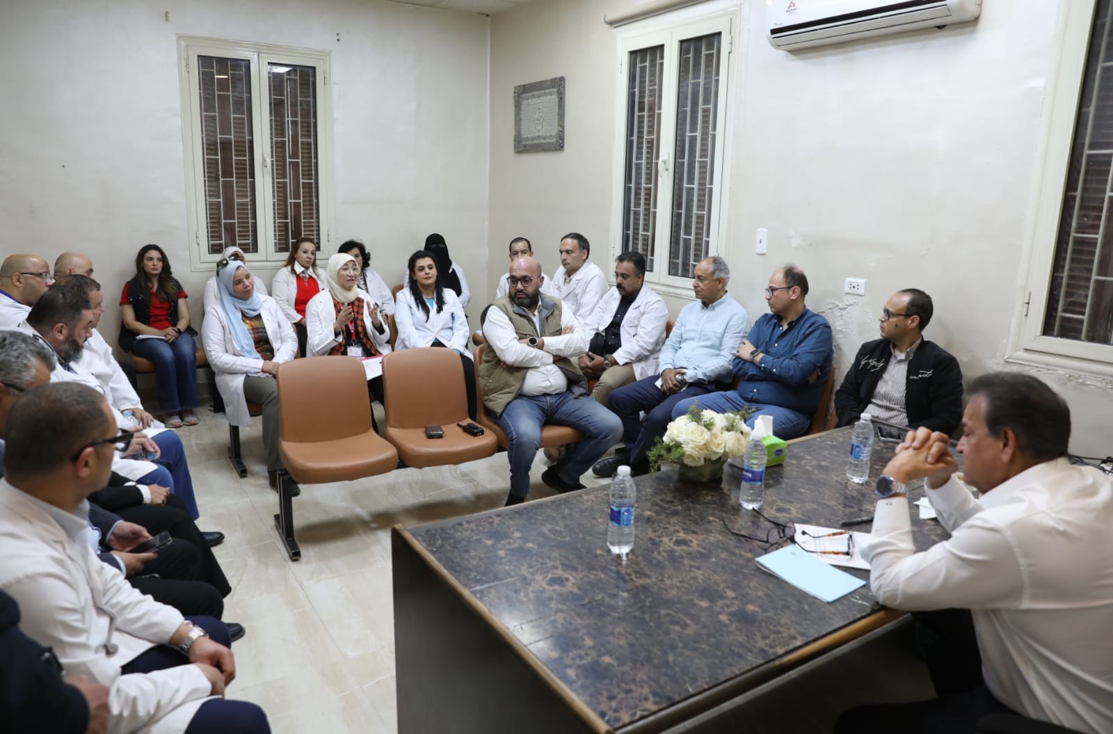 وتابع أن الوزير عقد اجتماعاً مع الأطقم الطبية، مؤكداً أن أعمال التطوير تهدف إلى الارتقاء بمستوى الخدمات الصحية وتعزيز البنية التحتية والتجهيزات الطبية، تنفيذاً لتوجيهات الرئيس عبدالفتاح السيسي.