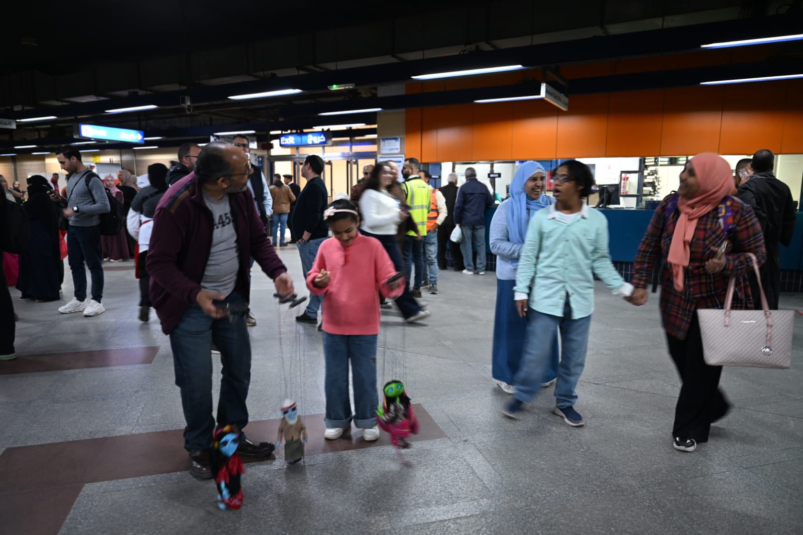 وشهدت الفعاليات تجمعات كبيرة من الركاب، حيث نجحت العروض في خلق حالة من البهجة بين الحضور من مختلف الأعمار، بعد أن قدم الأراجوز فقرات تفاعلية لاقت استحسان الجمهور الذي حرص على توثيق اللحظات بالهواتف المحمولة.