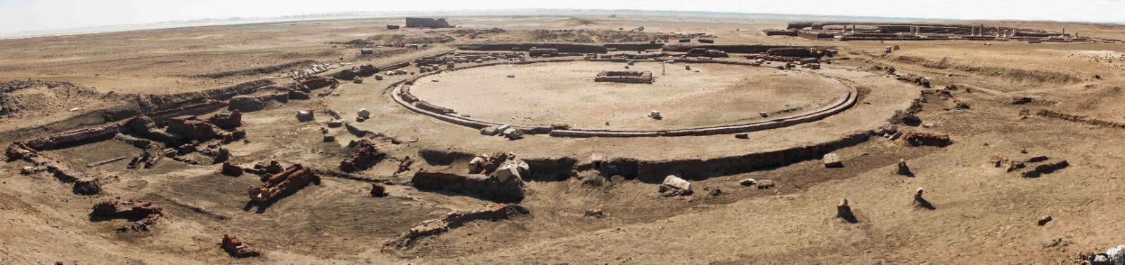 وأوضح الدكتور هشام حسين رئيس الادارة المركزية لآثار الوجه البحري وسيناء والمشرف على البعثة، أن بداية الكشف عن هذا المبنى يعود إلى عام 2019، حين عثرت البعثة على جزء لا يتجاوز 25% من منشأة دائرية مشيدة من الطوب الأحمر، ورُجّح حينها أنها تمثل مبنى مجلس الشيوخ بالمدينة. إلا أن استكمال أعمال الحفائر خلال المواسم اللاحقة أتاح الكشف الكامل عن المبنى، الذي تبيّن أنه ذو تصميم معماري ضخم ومعقّد، يتوسطه فناء دائري يبلغ قطره نحو 35 متراً، تحيط به قنوات وخزانات للمياه، مع مداخل متعددة من الجهات الشرقية والجنوبية والغربية، بينما تعرضت الجهة الشمالية لتدمير كبير.