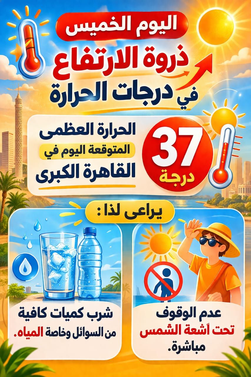 عاجل| الأرصاد تحذر: تجنبوا التعرض المباشر لأشعة الشمس وأكثروا من شرب المياه
