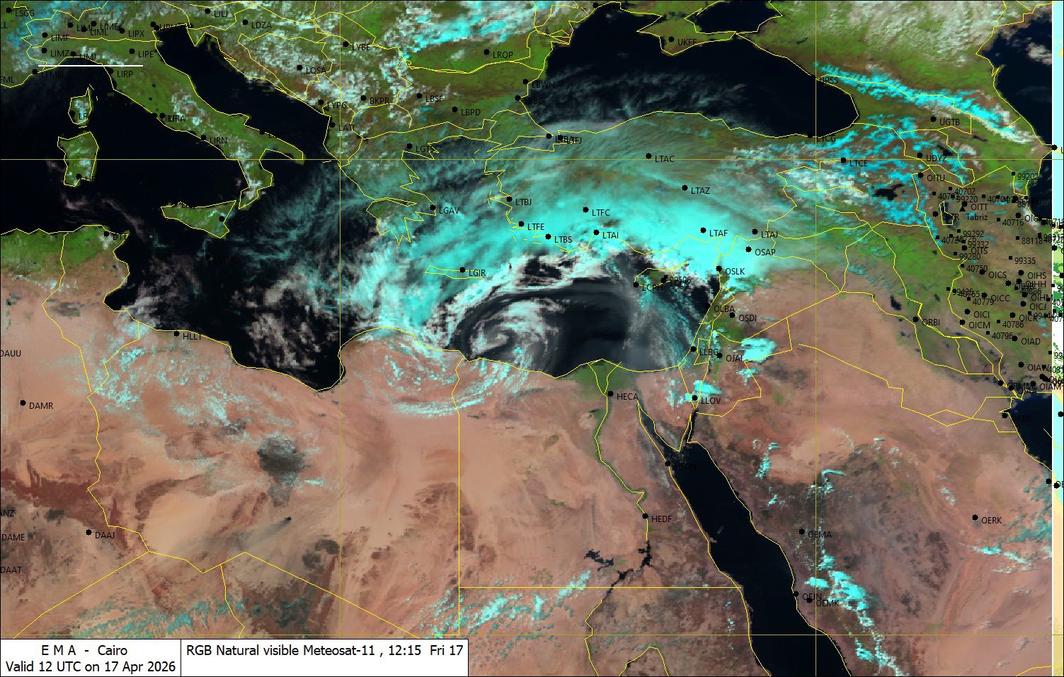 وتظهر بعض السحب على مناطق من أقصى غرب البلاد، يُصاحبها سقوط أمطار متفاوتة الشدة مع تقدم الوقت.
