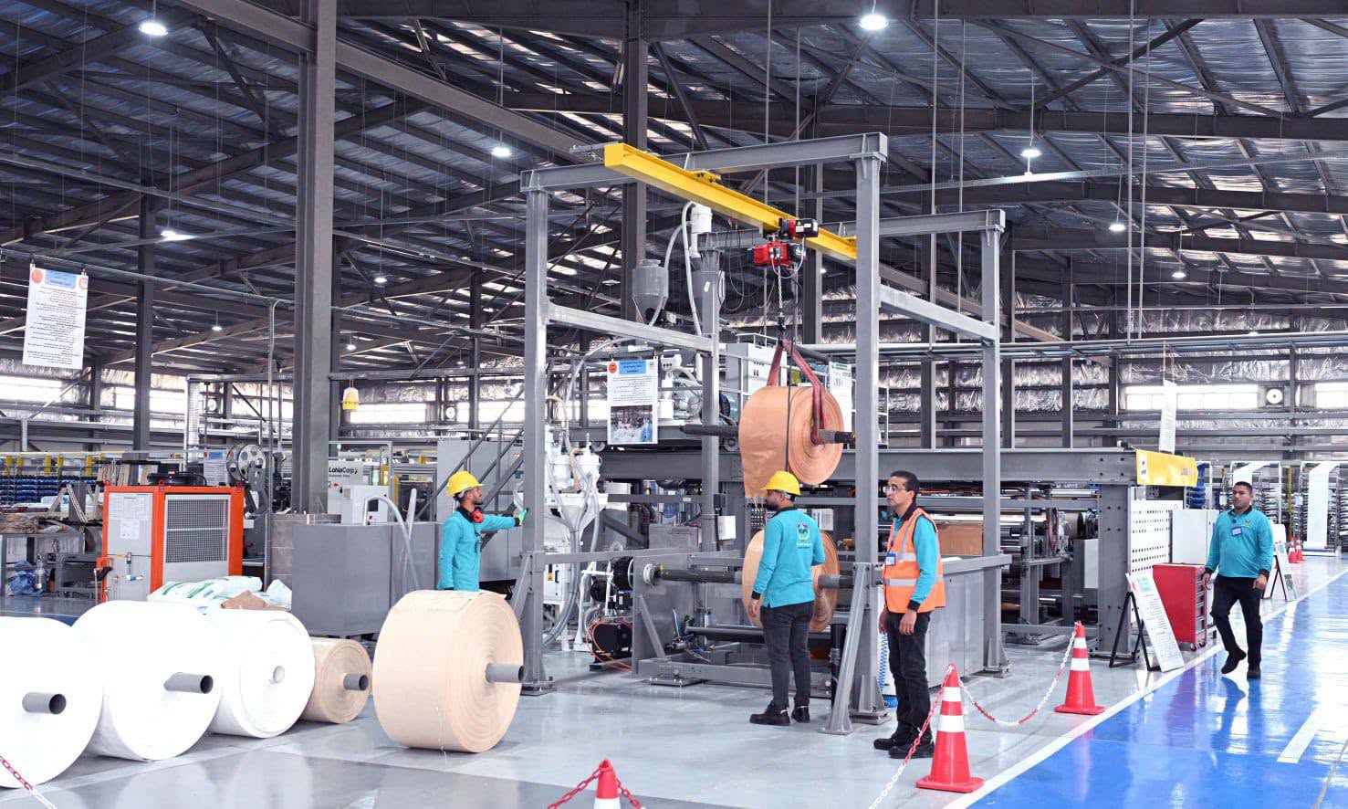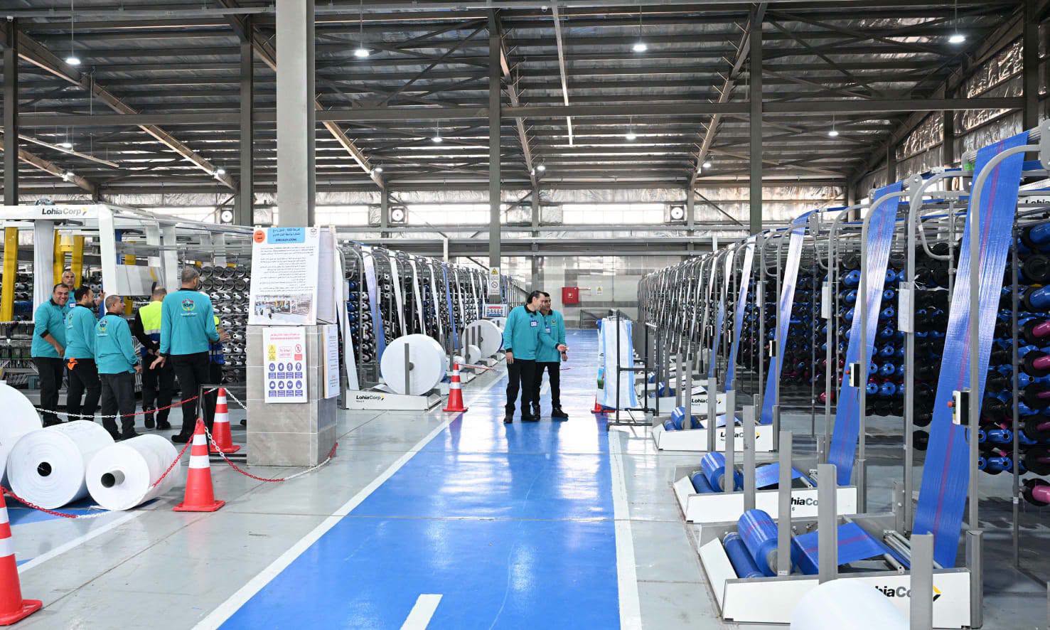 وخلال الجولة، شرح العميد محمد عزت، مدير مصنع الشكائر المنسوجة، مراحل التصنيع داخل صالات الإنتاج، والقائم على الأساس على انتاج خيوط البولي بروبلين لصناعة الشكائر المنسوجة، بما في ذلك مرحلة استلام الخامات وفحصها للتأكد من مطابقتها لمعايير الجودة، ثم بدء خطوات التصنيع وإنتاج الشكائر المنسوجة، لمختلف الاستخدامات، طبقاً للمواصفات القياسية، ومن ذلك مرحلة غزل الخيوط، ومرحلة النسيج، ثم مرحلة التبطين للشكارة، ثم مرحلة الكبس وإعادة تدوير الهالك، ومرحلة قص الشكائر والخياطة، ومرحلة الطباعة، وكذا مرحلة مراقبة الجودة ومتابعة الإنتاج في عدة خطوات خلال التصنيع بهدف تقييم المواصفات القياسية للمنتج.