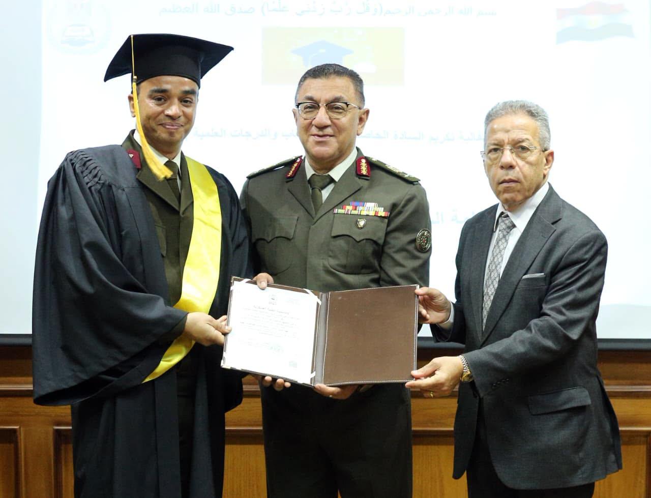 نظمت الأكاديمية الطبية العسكرية، مراسم تسليم الشهادات وتكريم الحاصلين على الألقاب العلمية وحملة الماجستير والدكتوراه والبورد المصري من الأطباء العسكريين والمدنيين الدارسين بالأكاديمية.